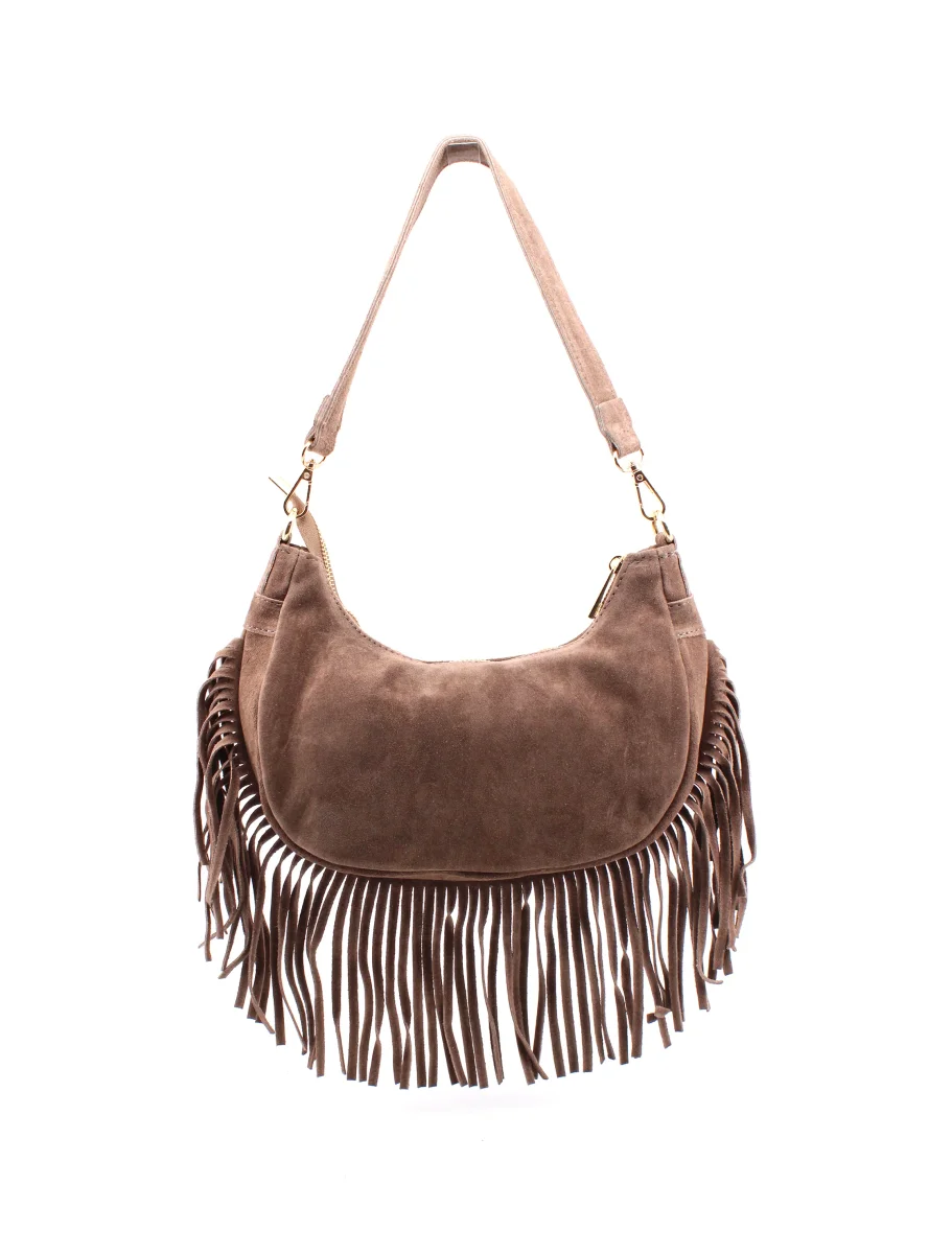 Borsa scamosciata con frange da donna
