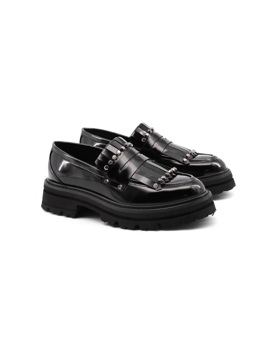 Mocassino donna con frange e borchiette