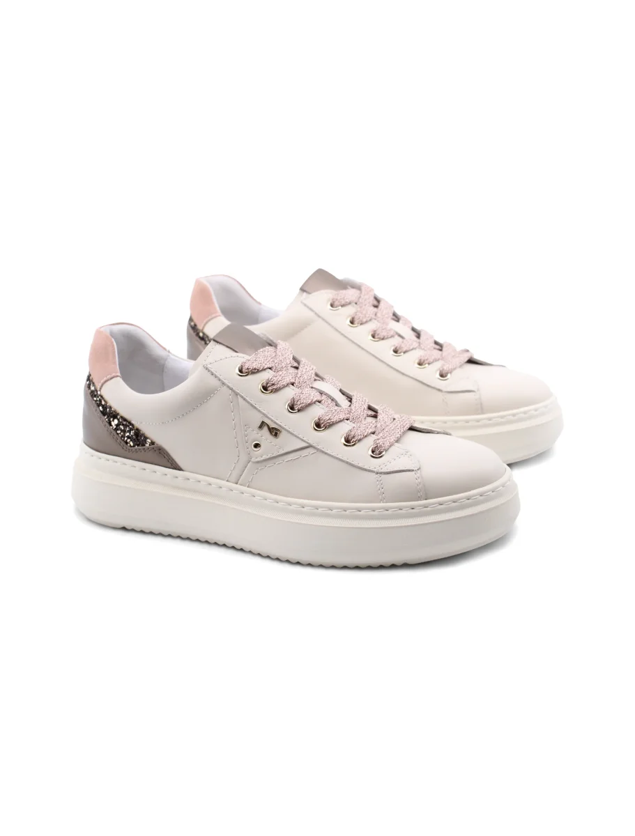 Sneaker bianca in vera pelle da donna