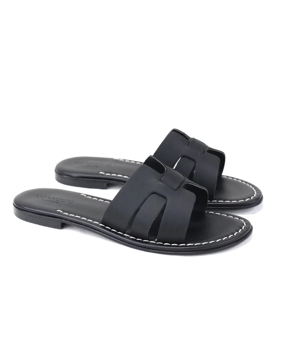 Ciabattina doppia fascia camoscio nero