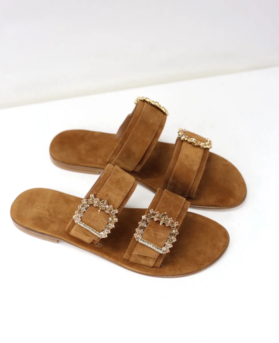 Ciabattina doppia fascia camoscio marrone