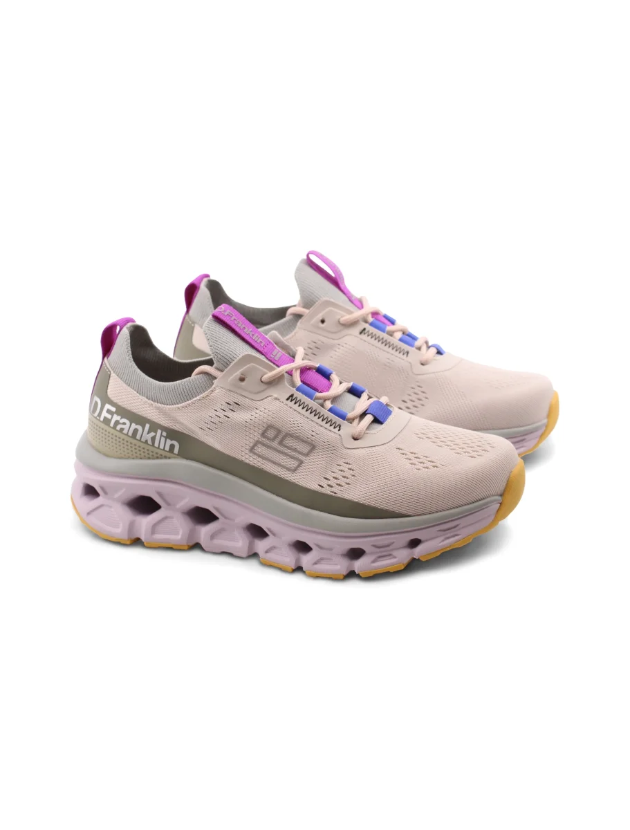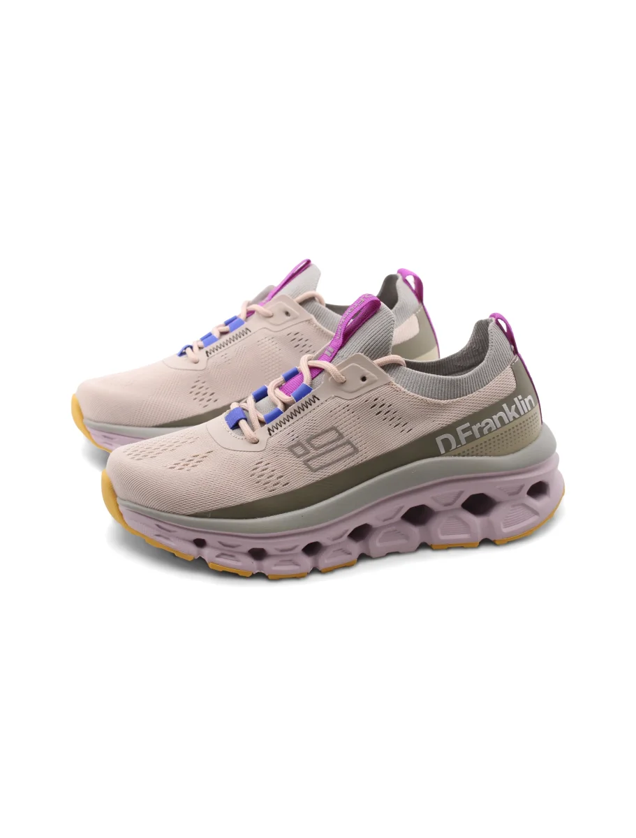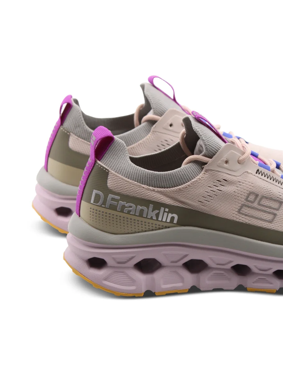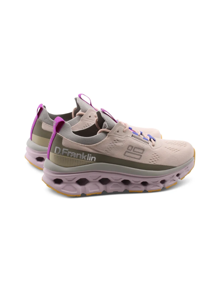 La Aero sneaker sportiva da donna di D.Franklin è il compagno perfetto per le tue avventure quotidiane. La chiusura con lacci ti assicura una calzata personalizzata, lasciandoti libere di muoverti senza pensieri. La fodera in tessuto offre una sensazione di morbidezza, permettendo ai tuoi piedi di respirare anche nei giorni più caldi.
