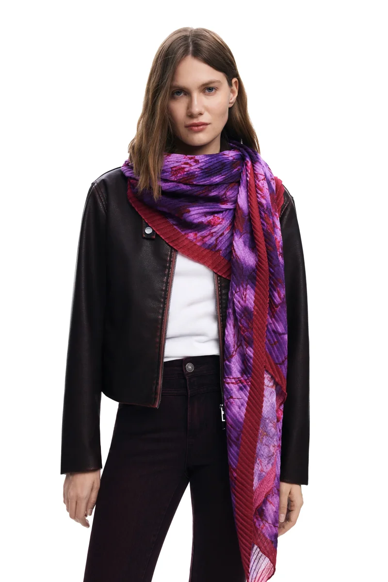 Si presta a molti usi — annodato al collo, come fascia per capelli o drappeggiato sulla spalla — e aggiunge un tocco di stile senza appesantire l’outfit. Il design firmato Desigual porta una nota distintiva senza essere eccessivo, ideale per chi ama dettagli originali ma versatili.