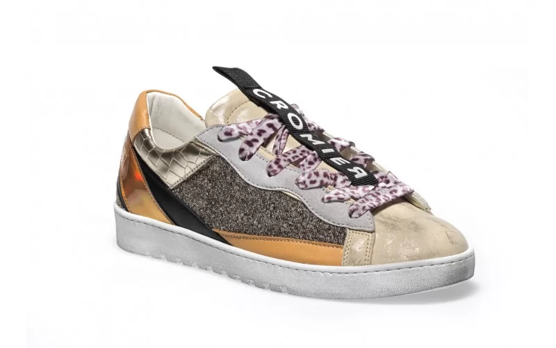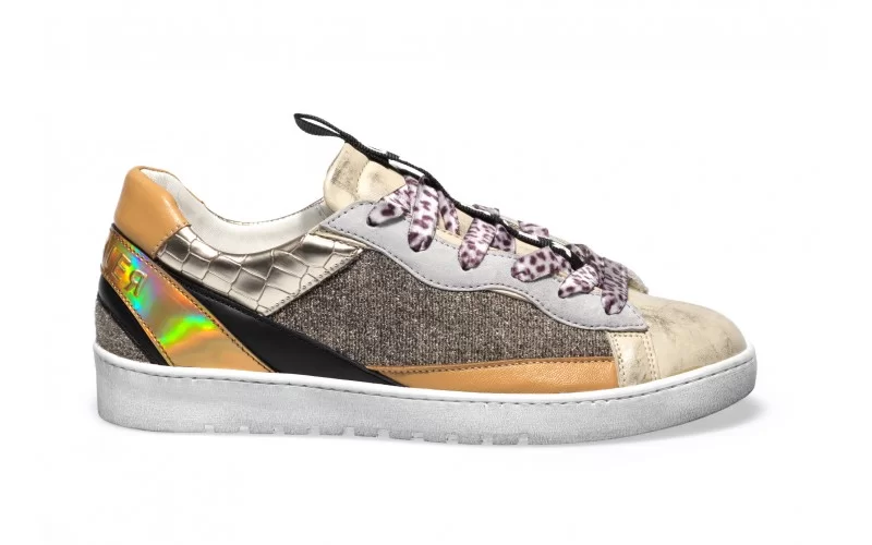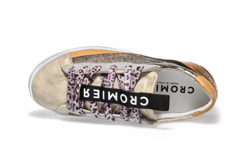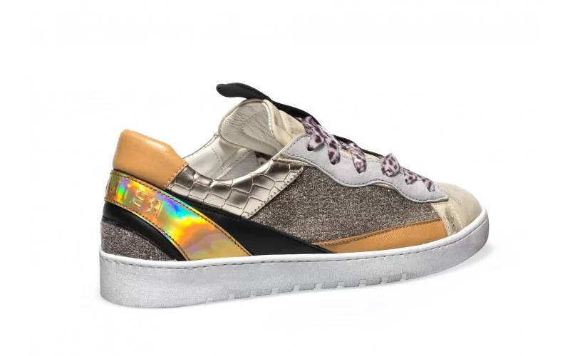 SNEAKERS IN PELLE SCAMOSCIATA CON INSERTI GLITTER E IN MATERIALE LAMINATO STAMPA COCCO