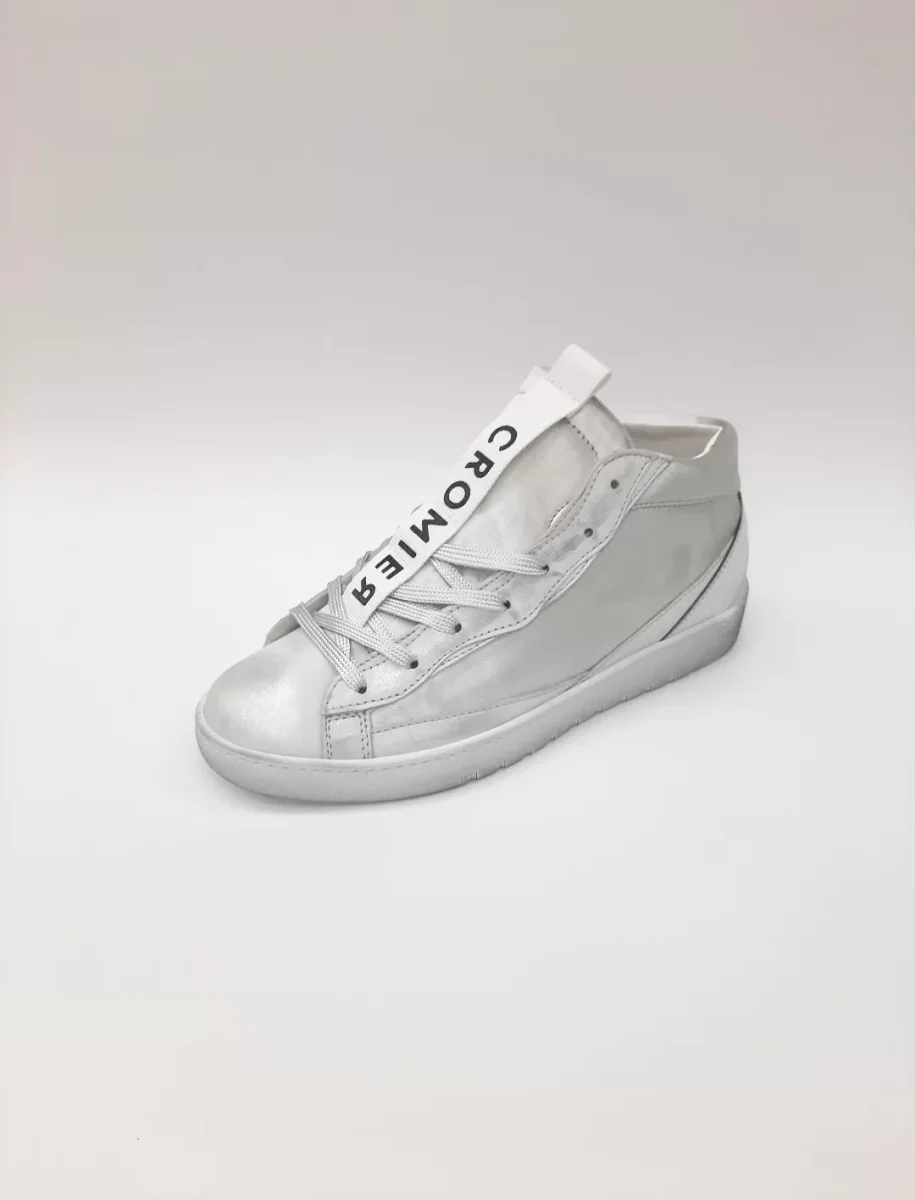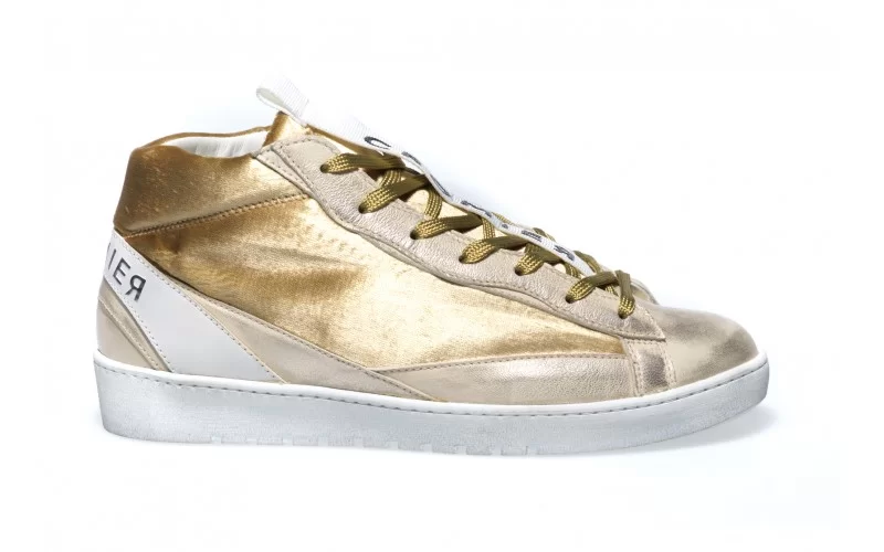 SNEAKERS IN PELLE CON LACCI IN TESSUTO