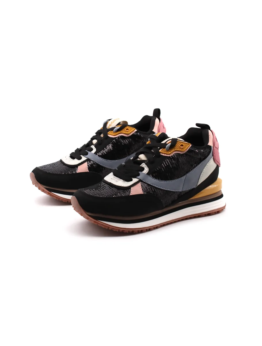 Gioseppo Alyth sneaker da donna con tomaia in tessuto con pailettes e inserti in pelle sintetica, morbido sottopiede in tessuto e suola in gomma. Comoda e versatile.