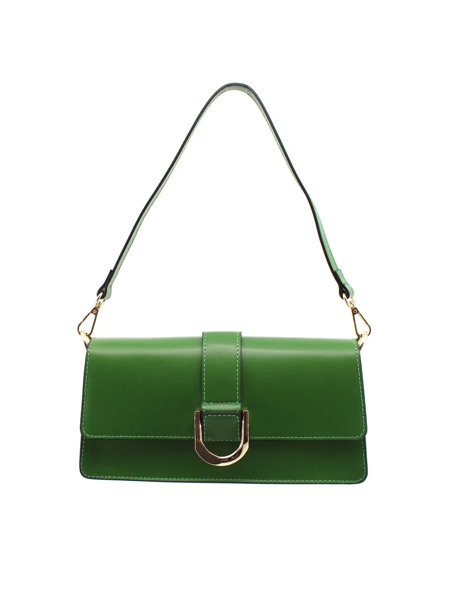 Borsa baguette da donna Laboratorio Artigianale Borse Ashley made in Italy con chiusura magnetica, dettagli oro e tracolla regolabile e removibile.