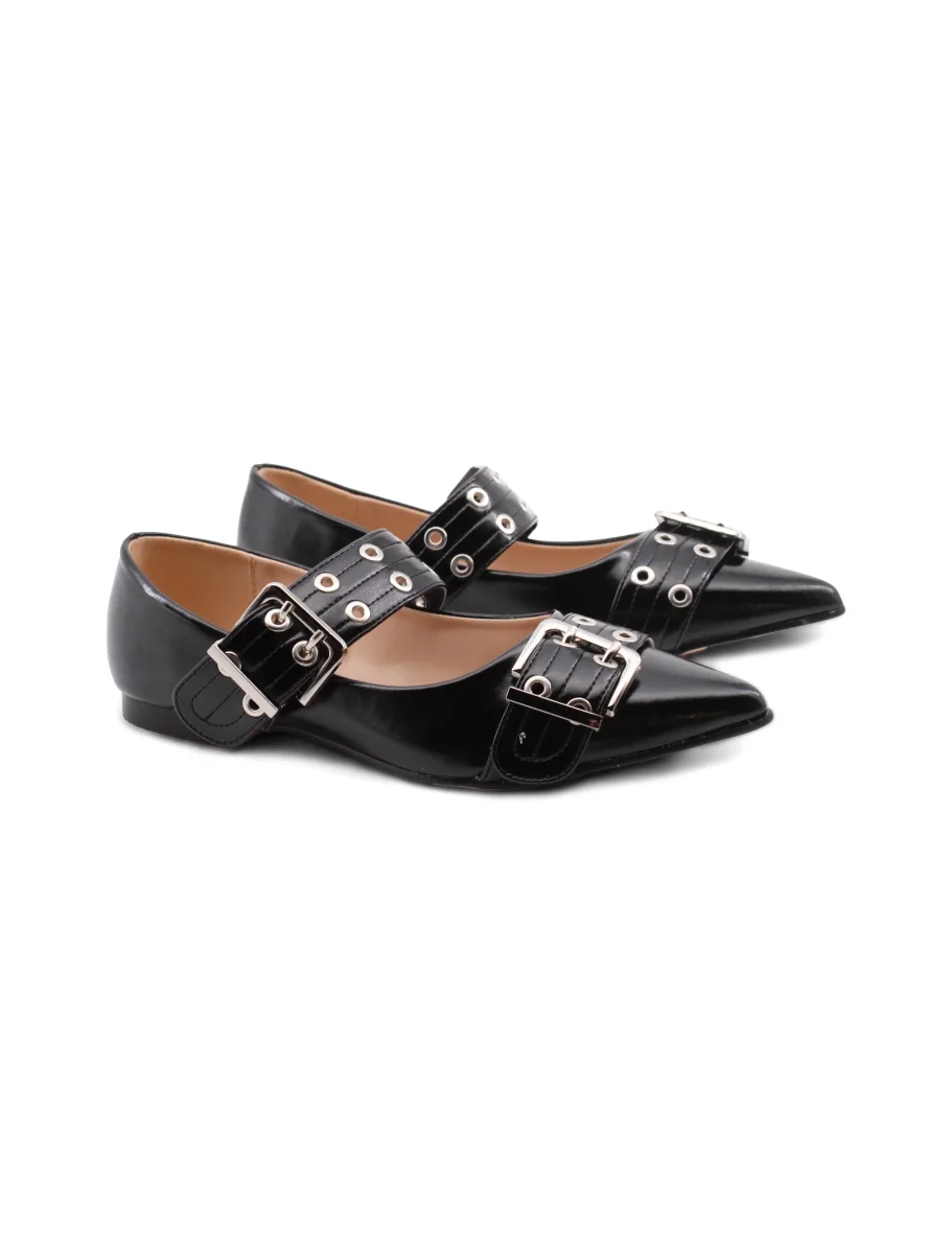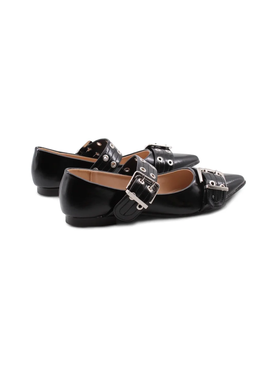 Queste ballerine a punta con fibbie e borchie di Gold&Gold sono l’aggiunta perfetta al tuo guardaroba. Con un tacco di solo 1 cm, sono ideali per chi cerca comfort senza rinunciare a uno stile chic. Non dovrai preoccuparti di avere i piedi stanchi dopo una lunga giornata: il plantare fisso ti offre un supporto costante, rendendo ogni passo piacevole e leggero.
