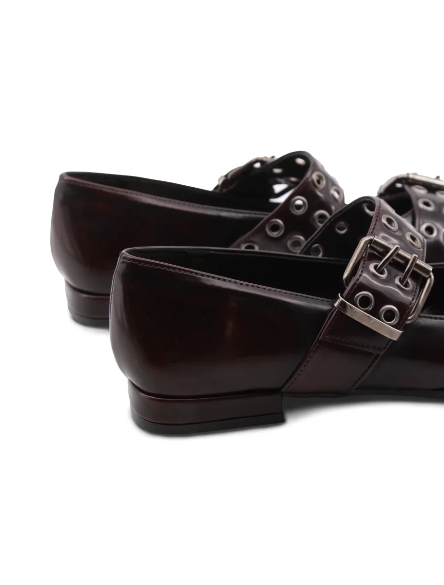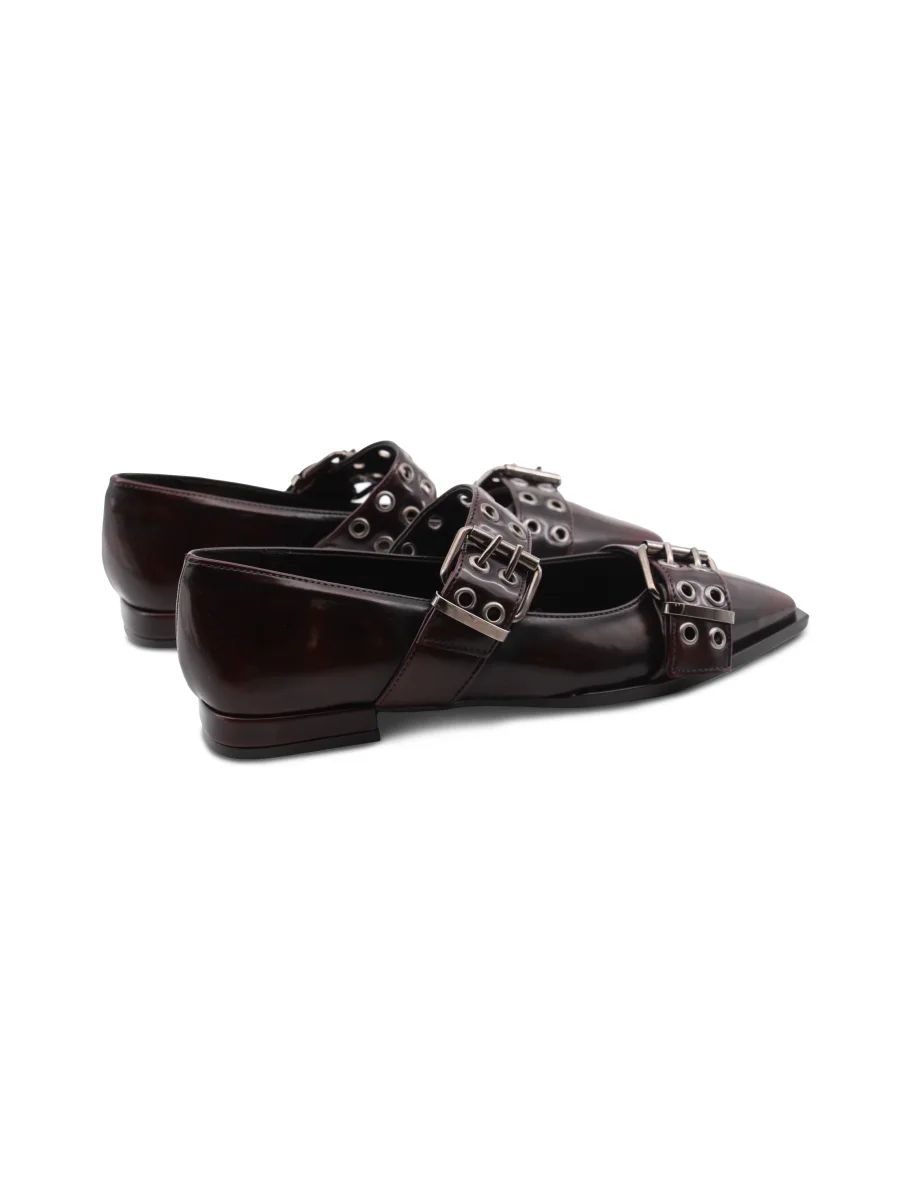 Eleganza e sofisticatezza si uniscono nella ballerina bordeaux con fibbie e borchie di Conte’ Studio 1978, un modello che incarna l’arte calzaturiera italiana. Ogni paio è un inno alla maestria artigianale, realizzato con una cura e una precisione che solo il Made in Italy può garantire.