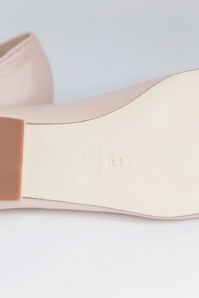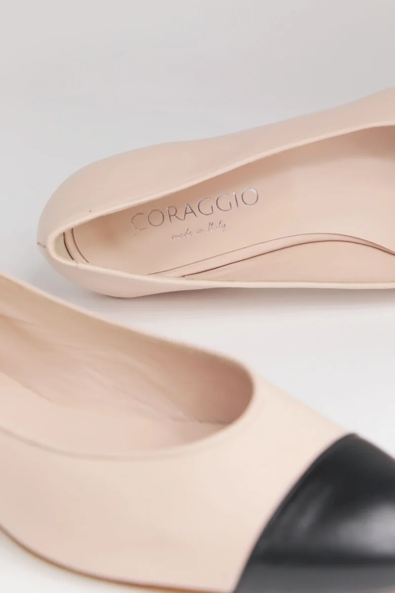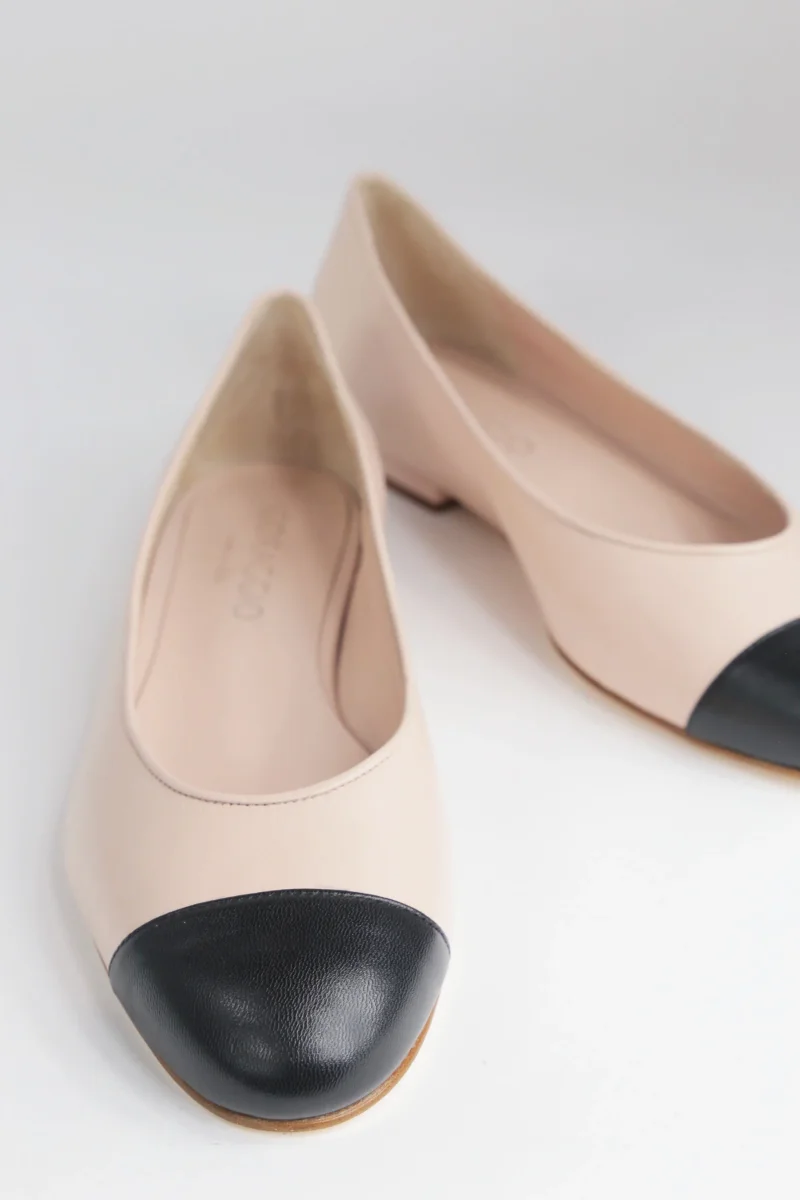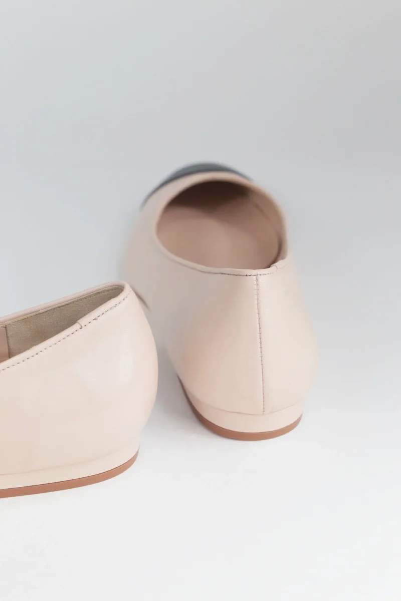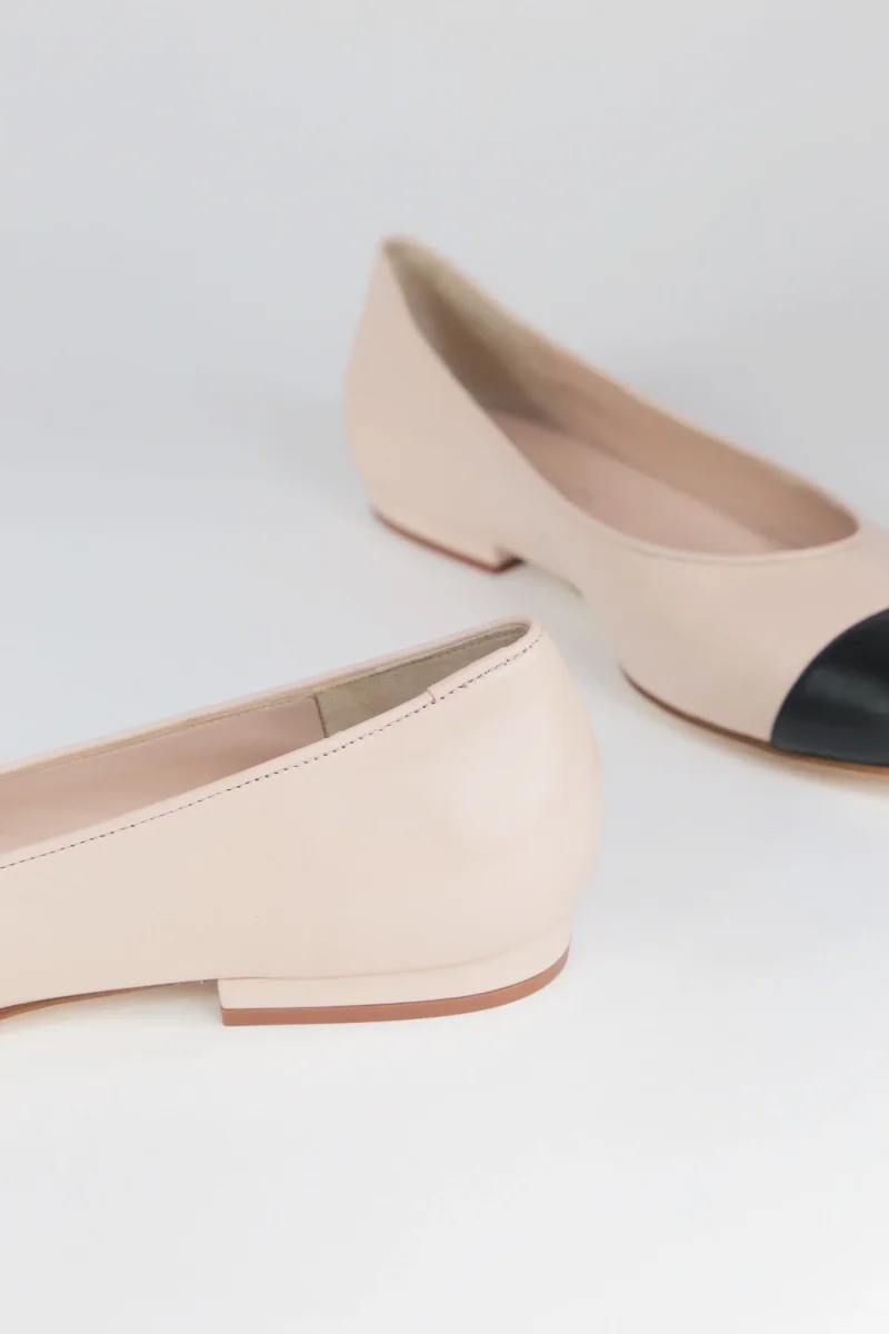 Ballerina in pelle color nude con puntale in pelle nera, numeri grandi con fodera interna in pelle, e suola in cuoio, elegante e morbidissima, made in Italy qualità artigianale