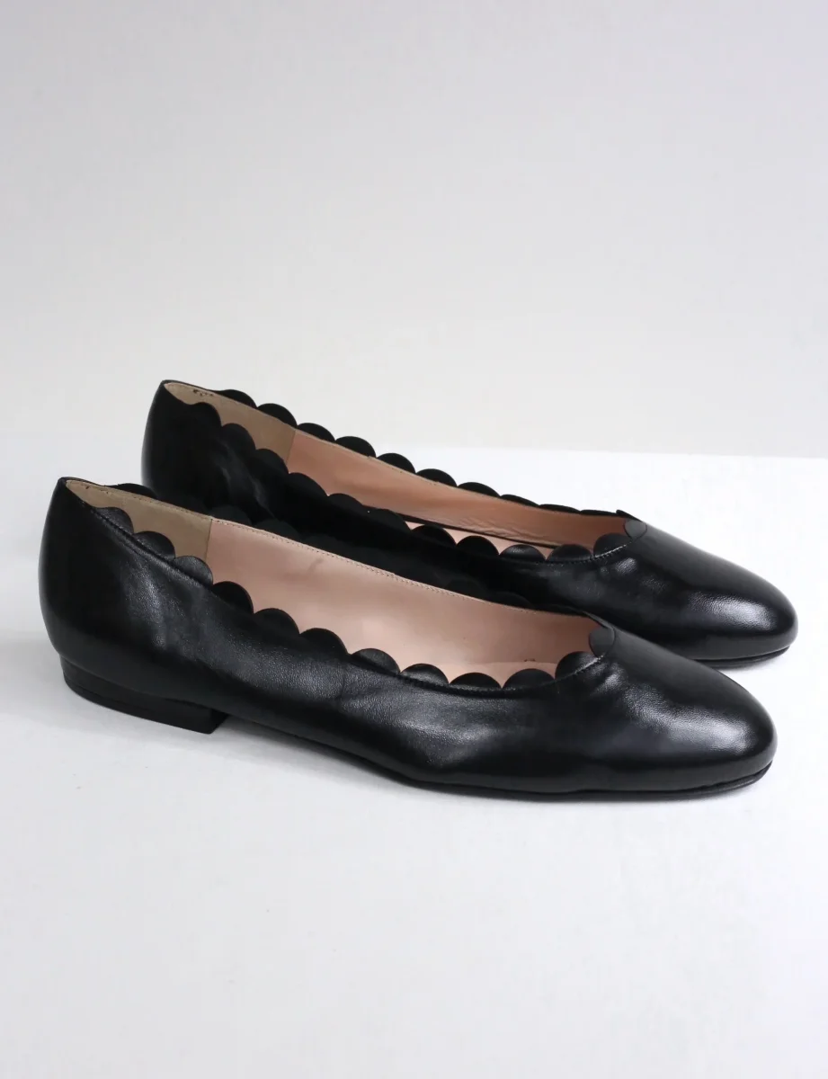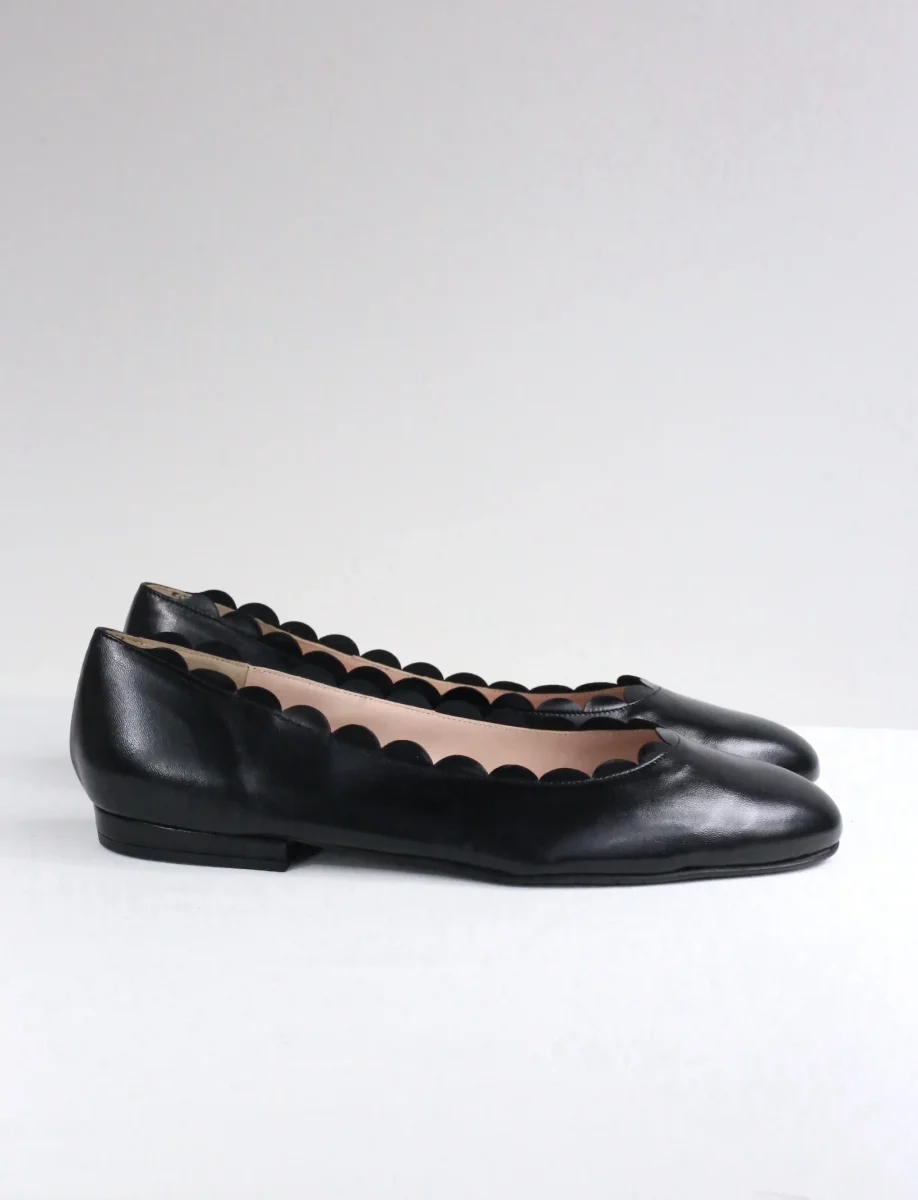 Ballerina in pelle di colore blu creata a mano da artigiani italiani, il tacco è di un centimetro ed il bordo a onde le regala un tocco fresco e molto particolare. Ballerine donna numeri grandi e piccoli. Se non è disponibile la tua taglia o la preferisci in una variante differente scrivici!