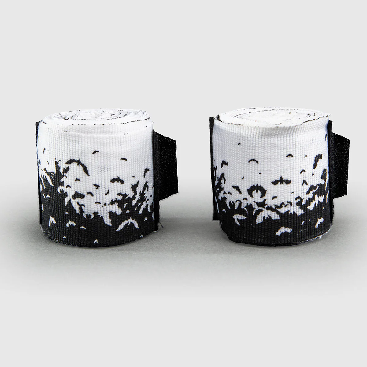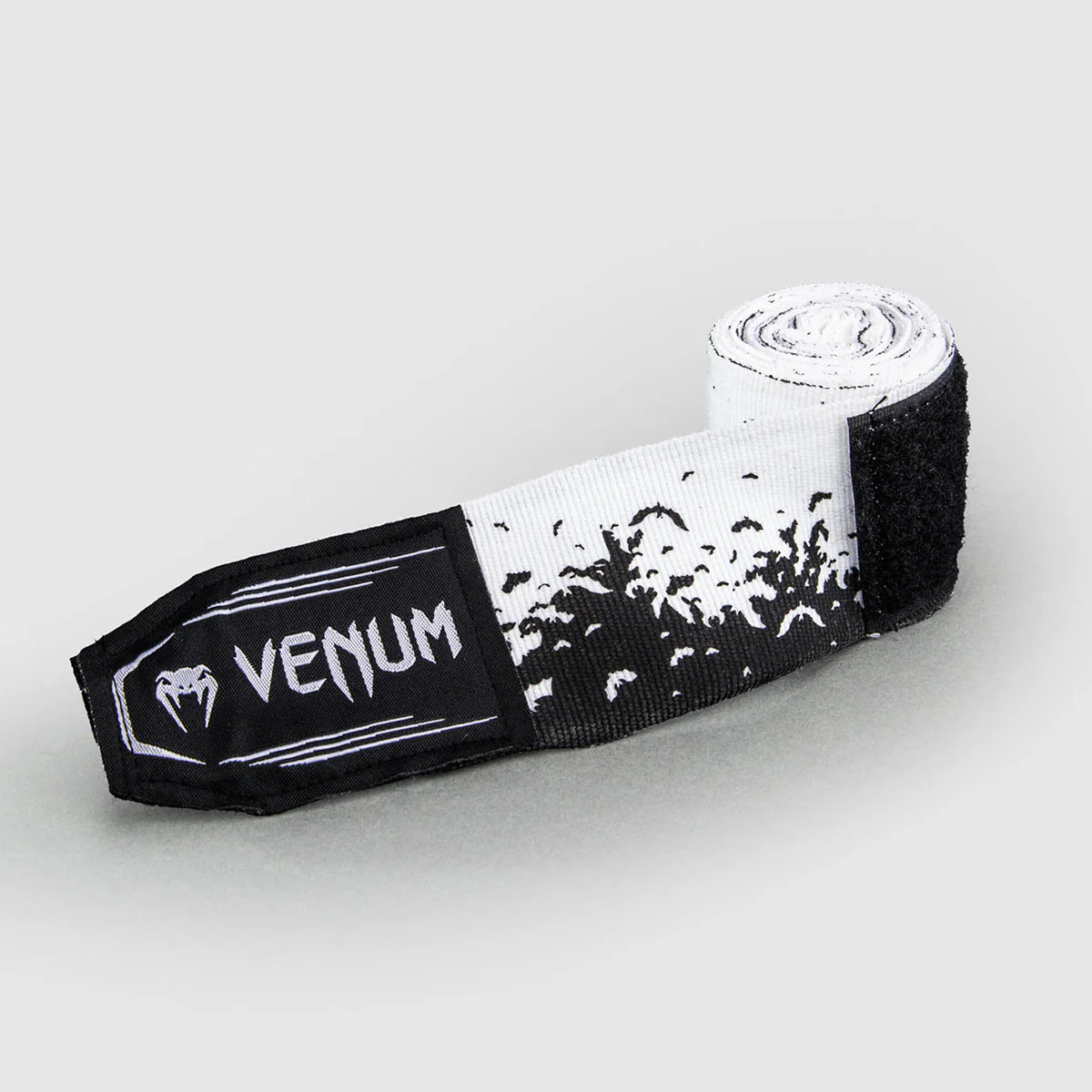 I Bendaggi fasce mani Venum Bats Night Nero-bianco uniscono supporto e stile per allenamenti di boxe, kickboxing, Muay Thai e MMA. La miscela in cotone ed elastan è resistente, elastica e traspirante: avvolge la mano, stabilizza polso e nocche e aiuta a ridurre il rischio di infortuni quando il ritmo sale. Il passante per il pollice rende l’avvolgimento immediato, mentre la chiusura a strappo tiene tutto fermo fino all’ultimo round. Vendute in coppia, sfoggiano il motivo pipistrelli per un look “spooky” tutto l’anno, con logo Venum ben visibile.