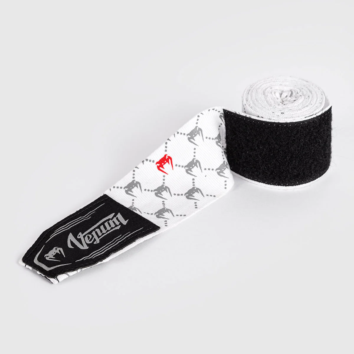 I bendaggi Venum Monogram Advanced Bianco sono la scelta ideale per chi cerca pulizia, precisione e una protezione efficace. Da indossare sotto i guanti, offrono supporto a polsi e nocche, riducono gli sfregamenti e mantengono un’igiene ottimale. Il cotone elasticizzato avvolge la mano con il giusto equilibrio tra comfort e tenuta. L’anello per il pollice rende l’applicazione rapida e ordinata, mentre la chiusura in velcro tiene la fascia saldamente in posizione. Il design Monogram bianco, con logo sublimato e patch Venum, aggiunge un tocco elegante e rifinito al tuo kit.
