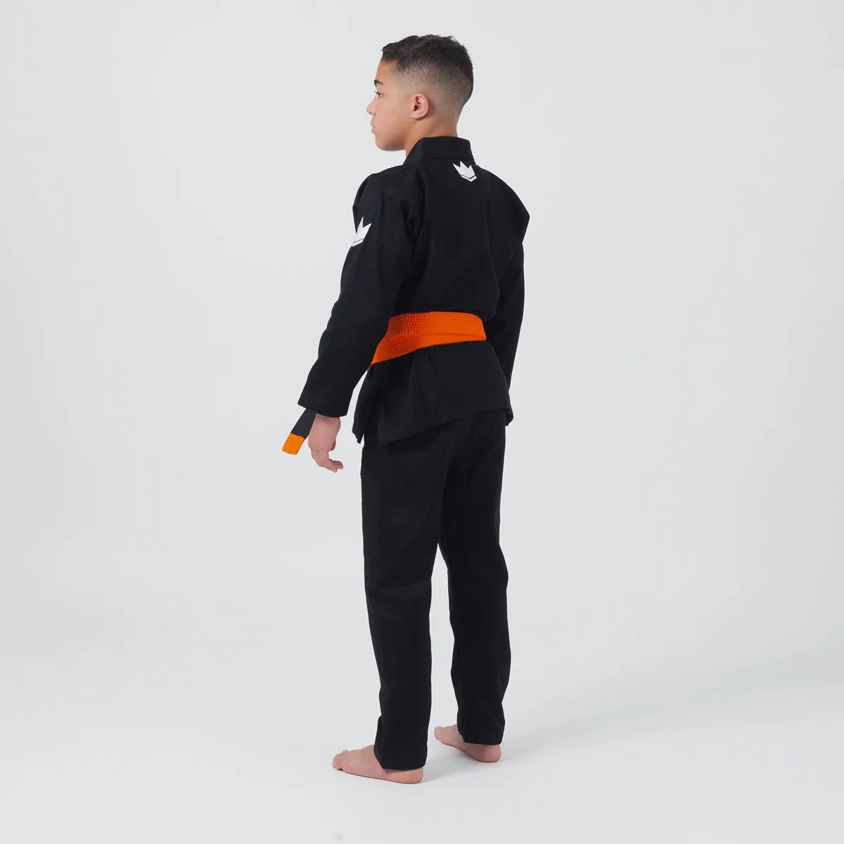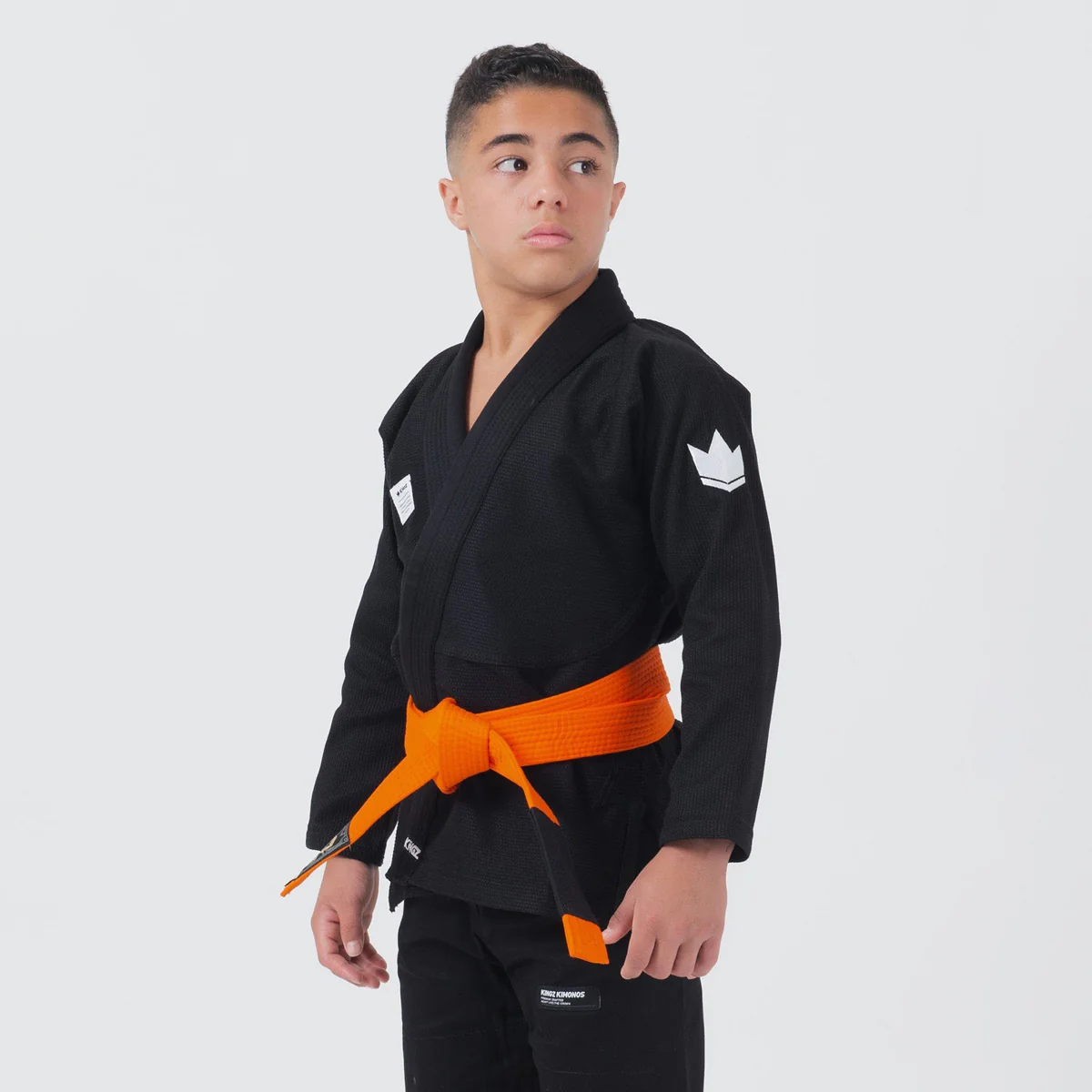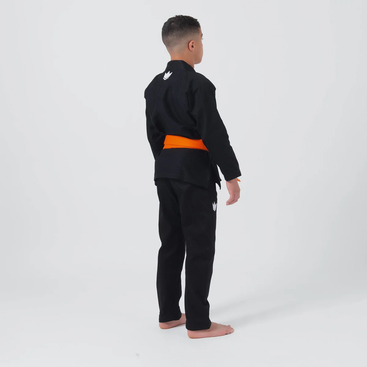 Il BJJ Gi bambino Kingz Kore V2 Nero è pensato per bambini e ragazzi che praticano Brazilian Jiu Jitsu e cercano un kimono resistente, comodo e adatto alla crescita. La giacca in Micro Pearl Weave 380 gr/mq con cuciture triple rinforzate garantisce solidità e leggerezza, ideale per sopportare allenamenti frequenti e lavaggi ripetuti. I pantaloni in cotone, dotati di doppio rinforzo sulle ginocchia, assicurano durata e comfort durante le fasi a terra. Il colletto in gomma vulcanizzata mantiene la forma, si asciuga velocemente e resiste alle alte temperature. Le finiture morbide lungo le cuciture aiutano a prevenire irritazioni sulla pelle sensibile dei più piccoli. La vita elastica (fino alla taglia M2) e il cordino a 6 passanti (dalla M3 in su) offrono una vestibilità stabile e adattabile a ogni fase della crescita. Con il suo look total black e lo stile inconfondibile Kingz, questo Gi è omologato IBJJF 2024 e pronto per l’allenamento o la gara.