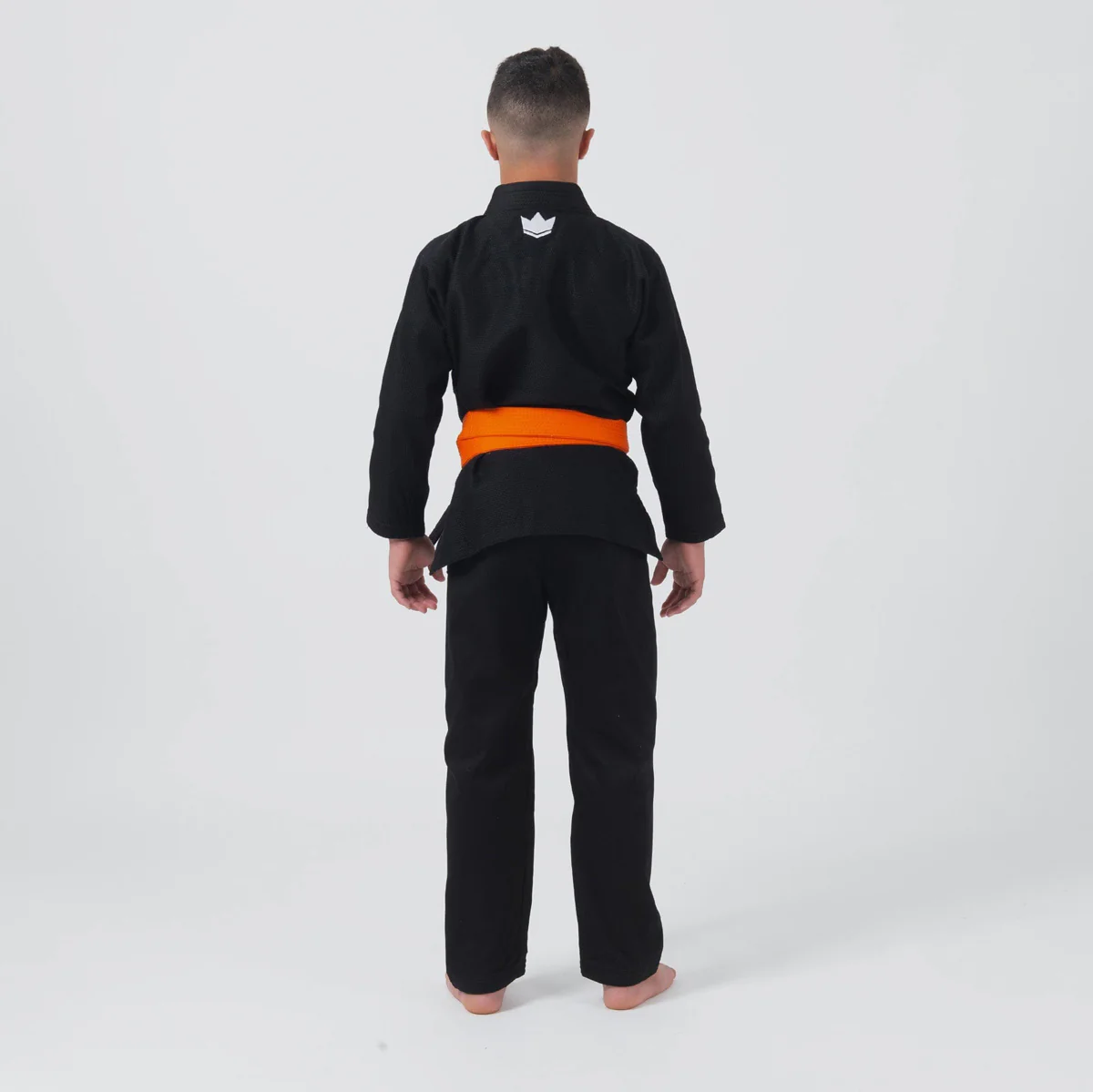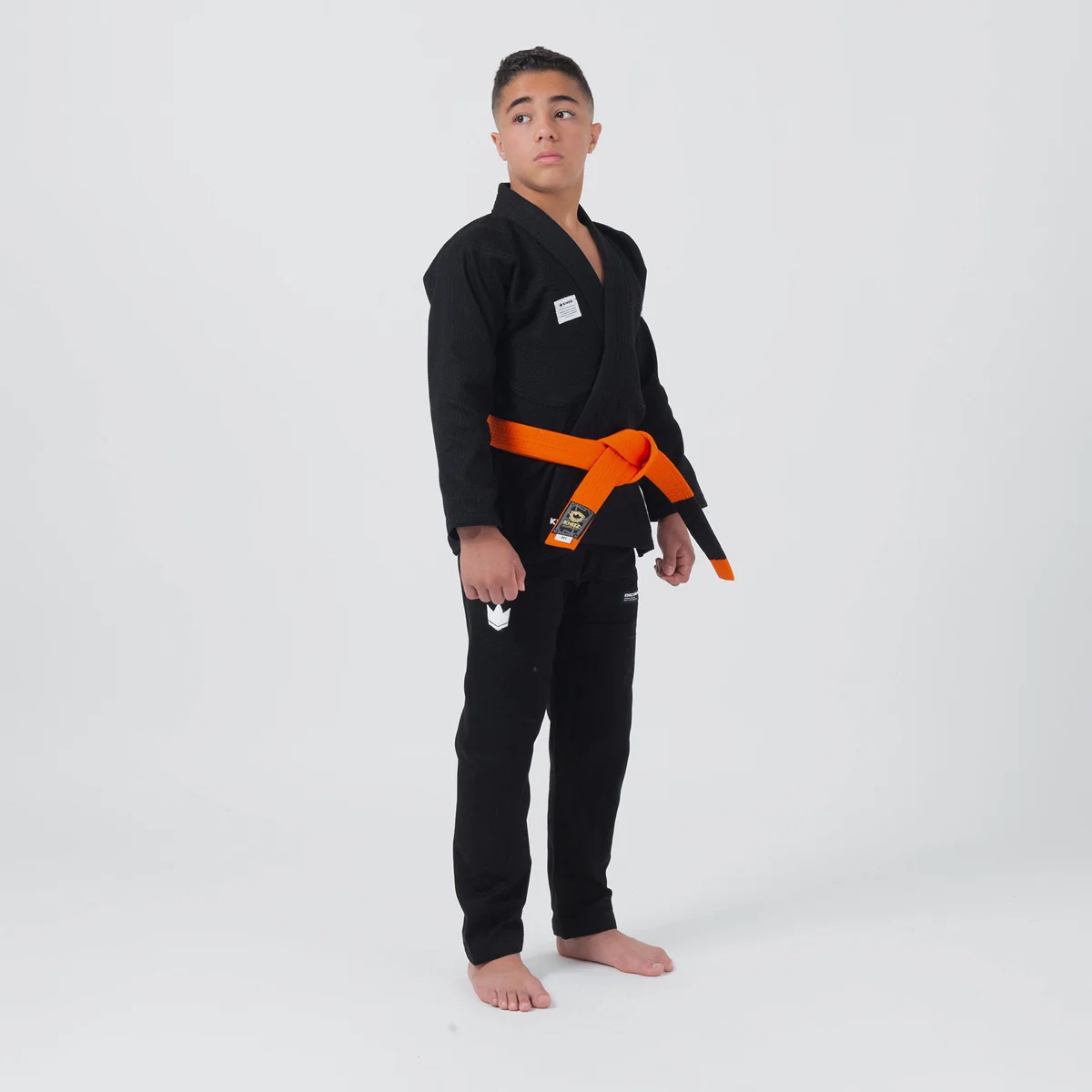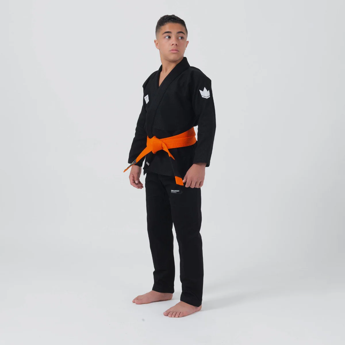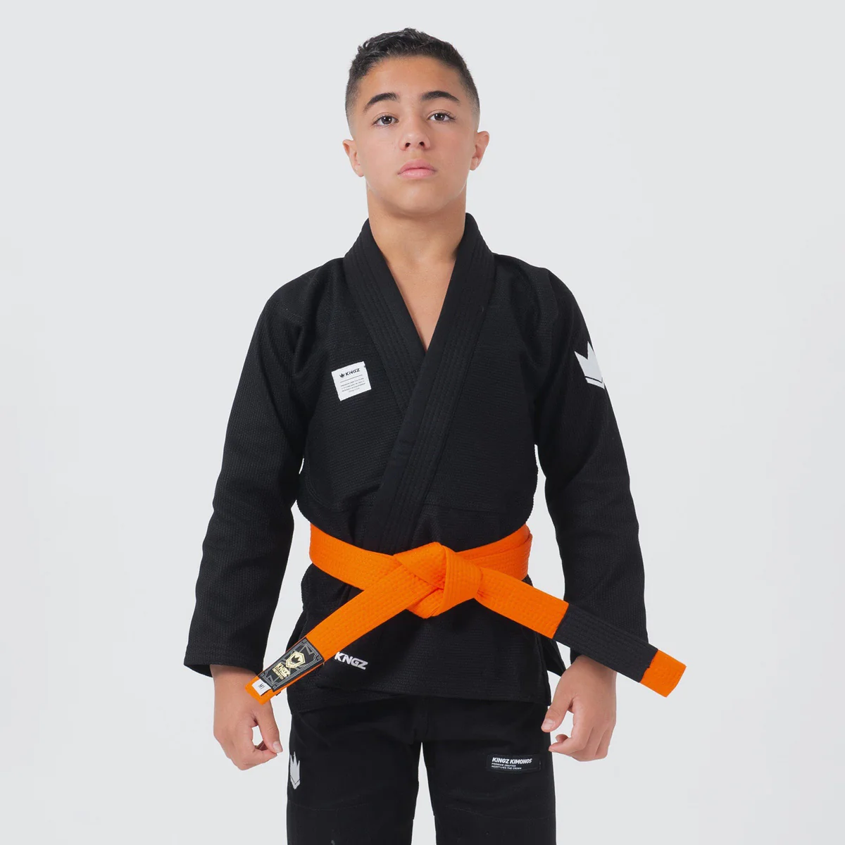 Il BJJ Gi bambino Kingz Kore V2 Nero è pensato per bambini e ragazzi che praticano Brazilian Jiu Jitsu e cercano un kimono resistente, comodo e adatto alla crescita. La giacca in Micro Pearl Weave 380 gr/mq con cuciture triple rinforzate garantisce solidità e leggerezza, ideale per sopportare allenamenti frequenti e lavaggi ripetuti. I pantaloni in cotone, dotati di doppio rinforzo sulle ginocchia, assicurano durata e comfort durante le fasi a terra. Il colletto in gomma vulcanizzata mantiene la forma, si asciuga velocemente e resiste alle alte temperature. Le finiture morbide lungo le cuciture aiutano a prevenire irritazioni sulla pelle sensibile dei più piccoli. La vita elastica (fino alla taglia M2) e il cordino a 6 passanti (dalla M3 in su) offrono una vestibilità stabile e adattabile a ogni fase della crescita. Con il suo look total black e lo stile inconfondibile Kingz, questo Gi è omologato IBJJF 2024 e pronto per l’allenamento o la gara.