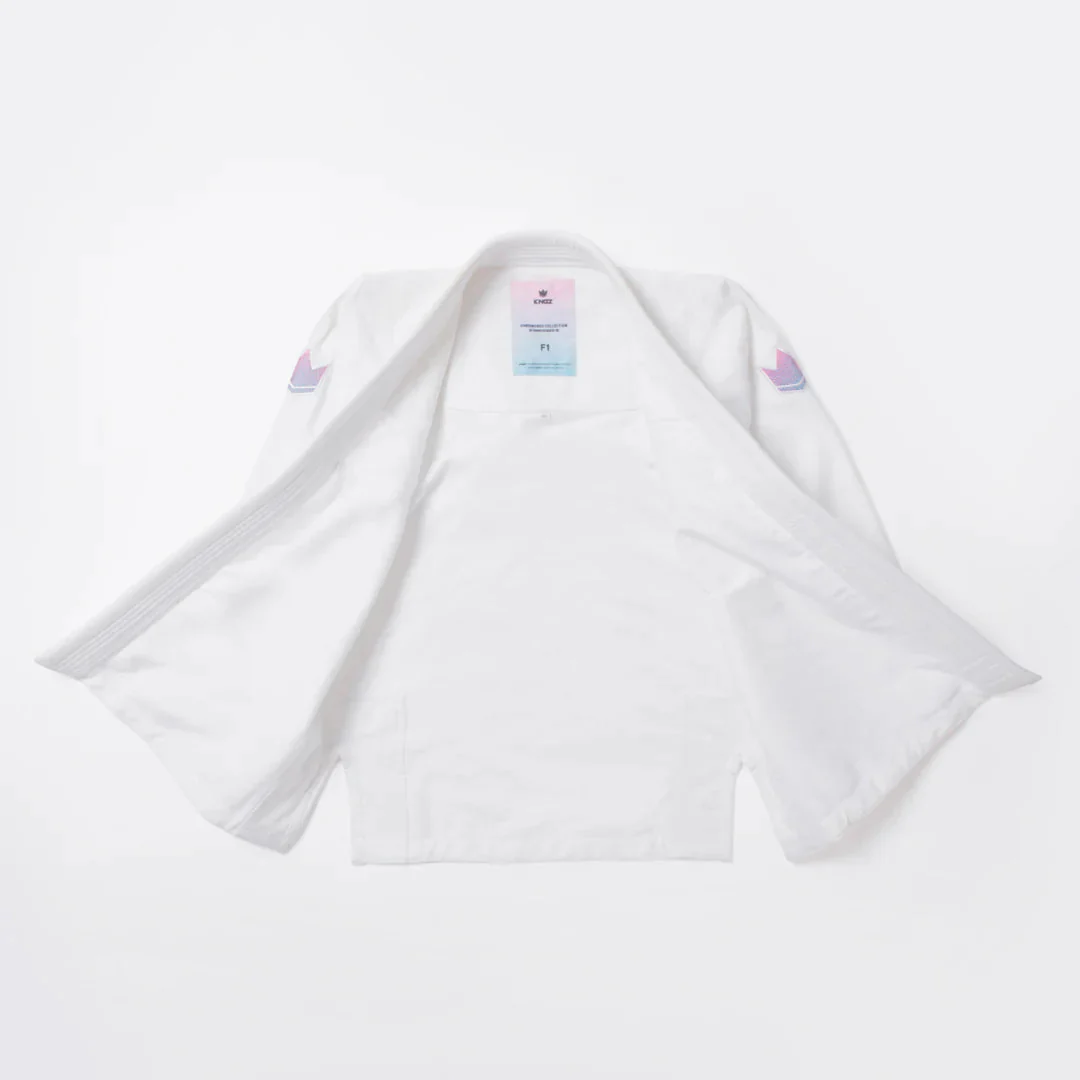 Il BJJ Gi donna Kingz Empowered è un modello dal taglio femminile di alta qualità . Dotato di giacca in cotone Pearl Weave High Tech con grammatura 400 gsm, presenta cuciture rinforzate in tutti i punti di maggiore tensione. La giacca è realizzata su un unico pezzo di tessuto per offrire massima resistenza. Il collo è completo di inserto in gomma sintetitica vulcanizzata per resistere al meglio alle prese. I Pantaloni del BJJ Gi Kingz Empowered sono realizzati in cotone 10 oz e presentano doppi rinforzi sulle ginocchia, sei passanti e un elegante cordoncino colorato. Approvato IBJJF, il gi include una sacca omaggio.