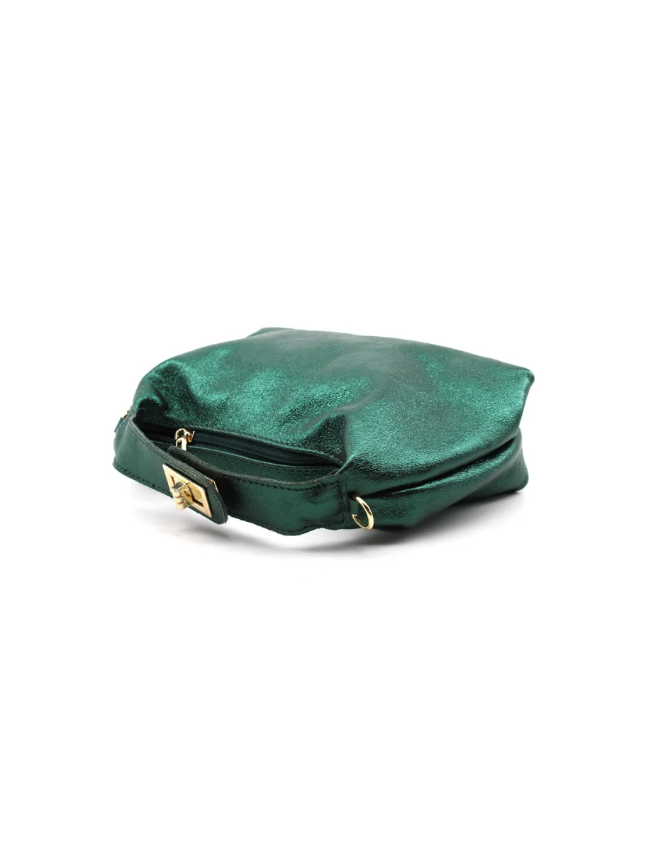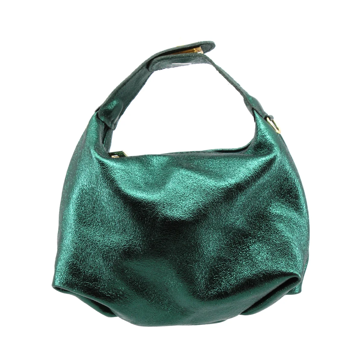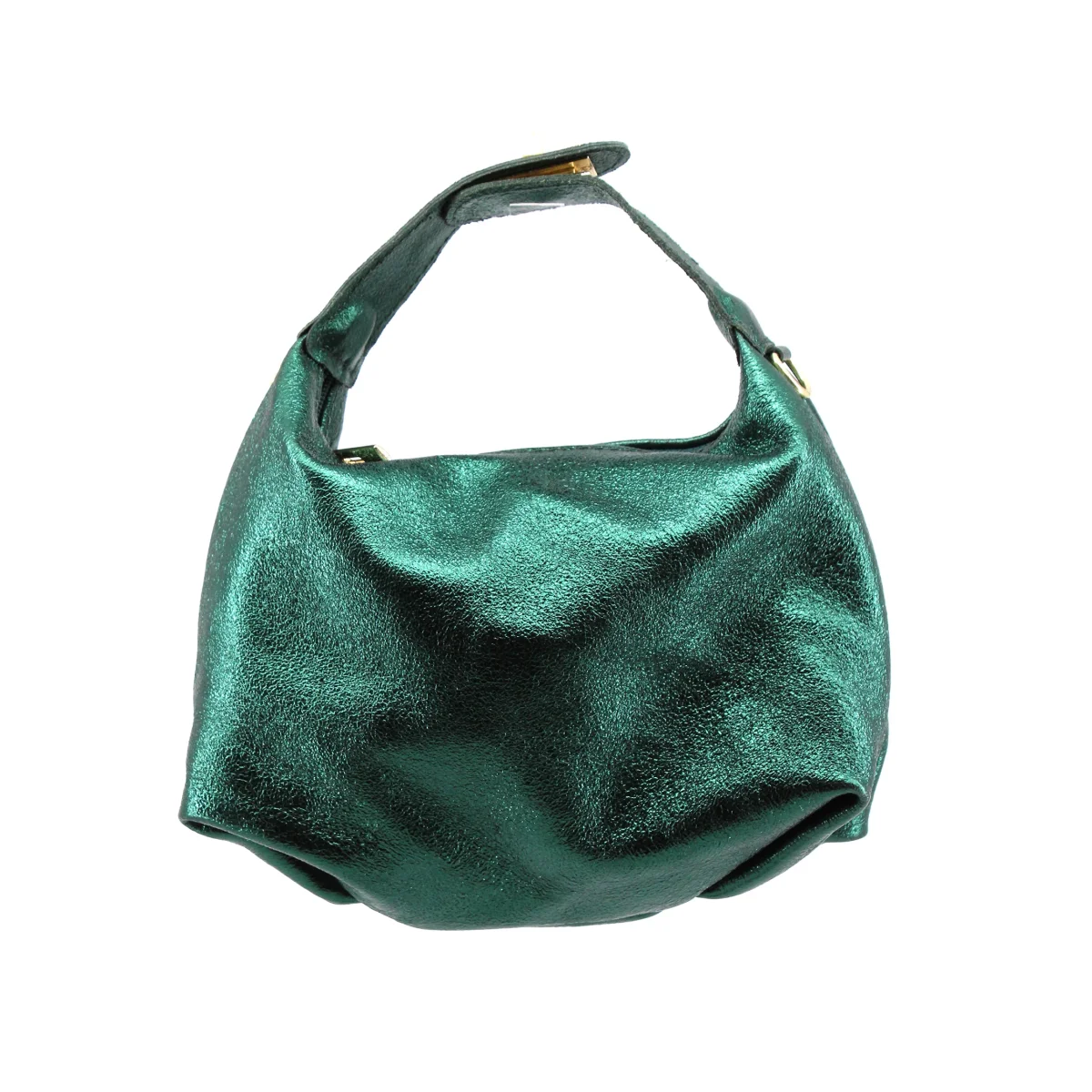 Laboratorio Artigianale Borse borsa a mano da donna in vera pelle laminata con dettagli dorati, chiusura con cerniera e catenella dorata removibile. Made in Italy.