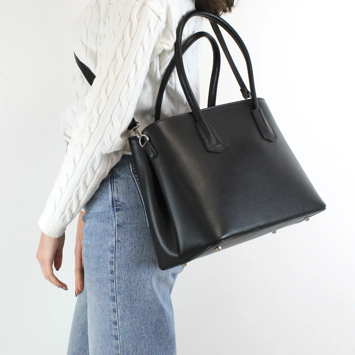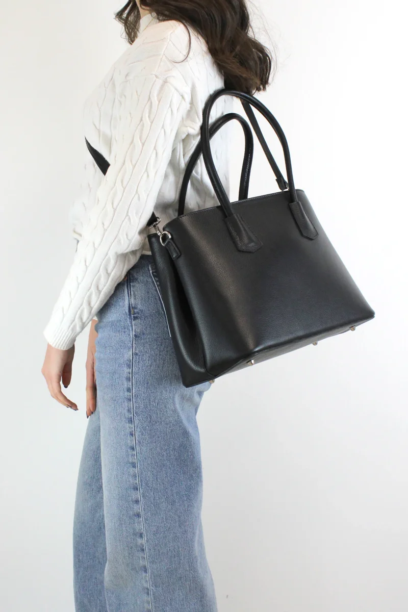 Presentiamo la nostra raffinata borsa a mano in pelle da donna, un autentico simbolo di eleganza e artigianalità , realizzata con passione nel cuore dell’Italia. Questa borsa si distingue per le sue dimensioni perfette, con una lunghezza di 35 cm, un’altezza di 24 cm e una profondità di 16 cm, che la rendono ideale per accompagnare ogni vostra giornata, dalle riunioni di lavoro agli eventi serali.