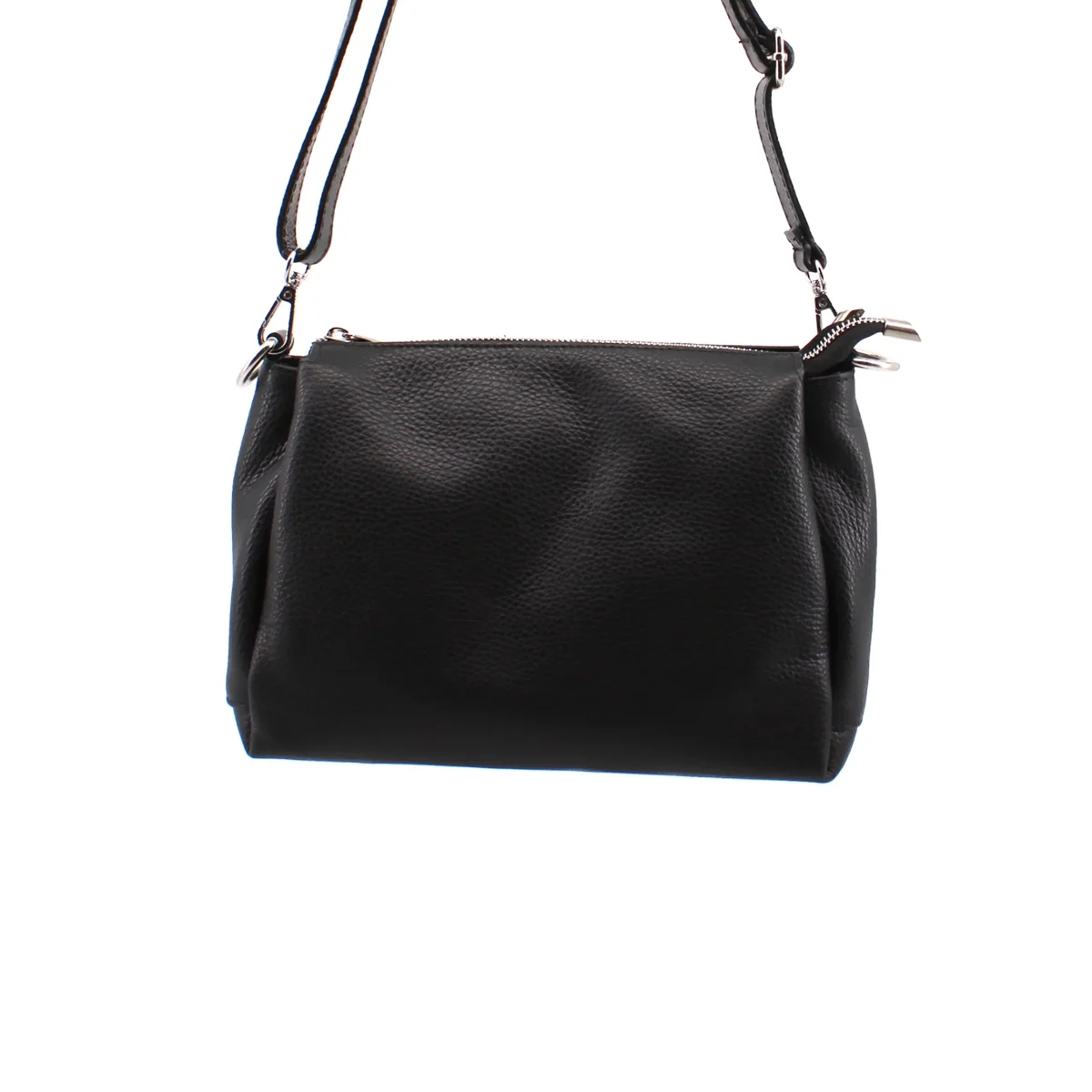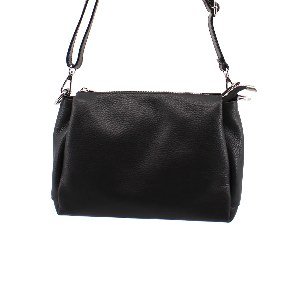 Borsa a tracolla da donna Laboratorio Artigianale Borse made in Italy in vera pelle con pratico taschino interno con zip, doppio scomparto separato da una tasca con zip, tracolla regolabile e removibile e chiusura con zip.