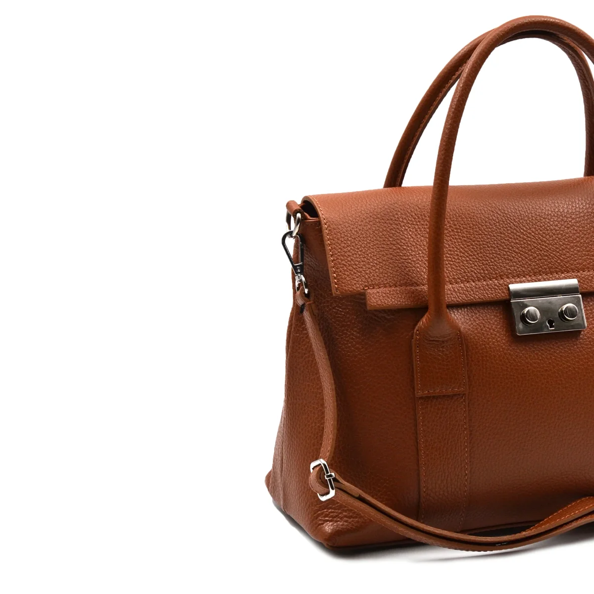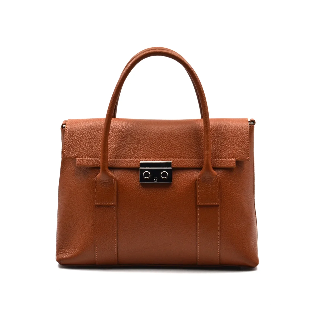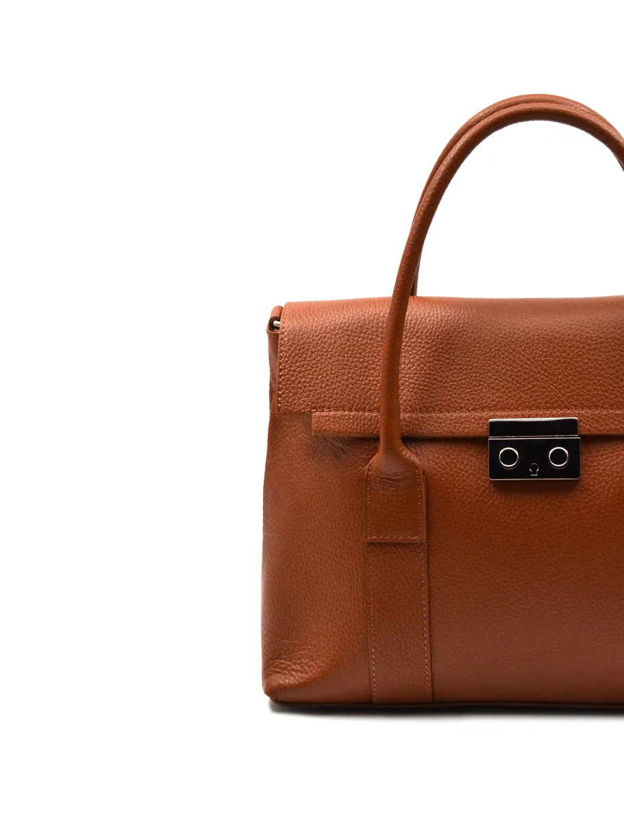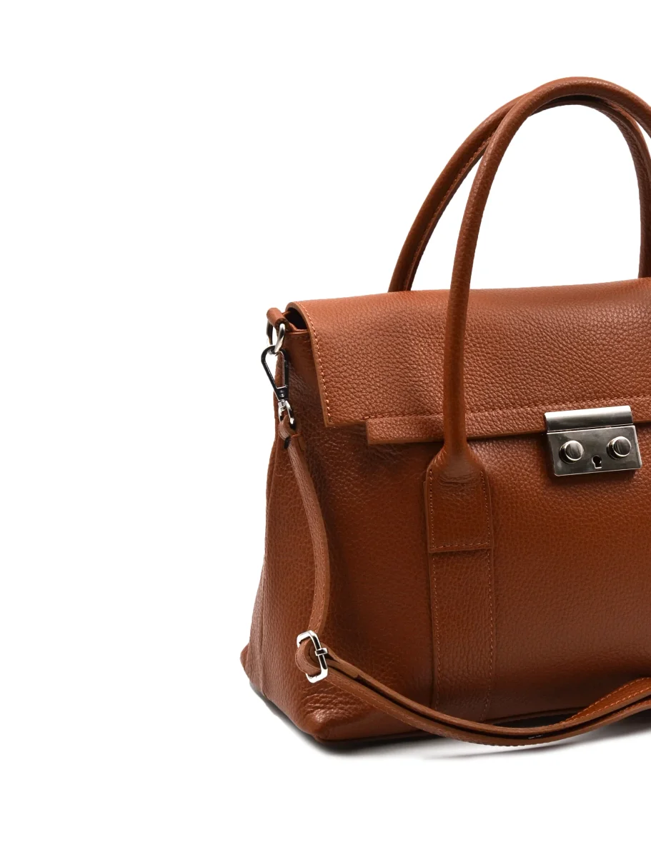 Borsa da donna Laboratorio Artigianale Borse made in Italy in vera pelle con doppio manico, chiusura a scatto in metallo e pratica zip interna. Comoda la tracolla removibile.