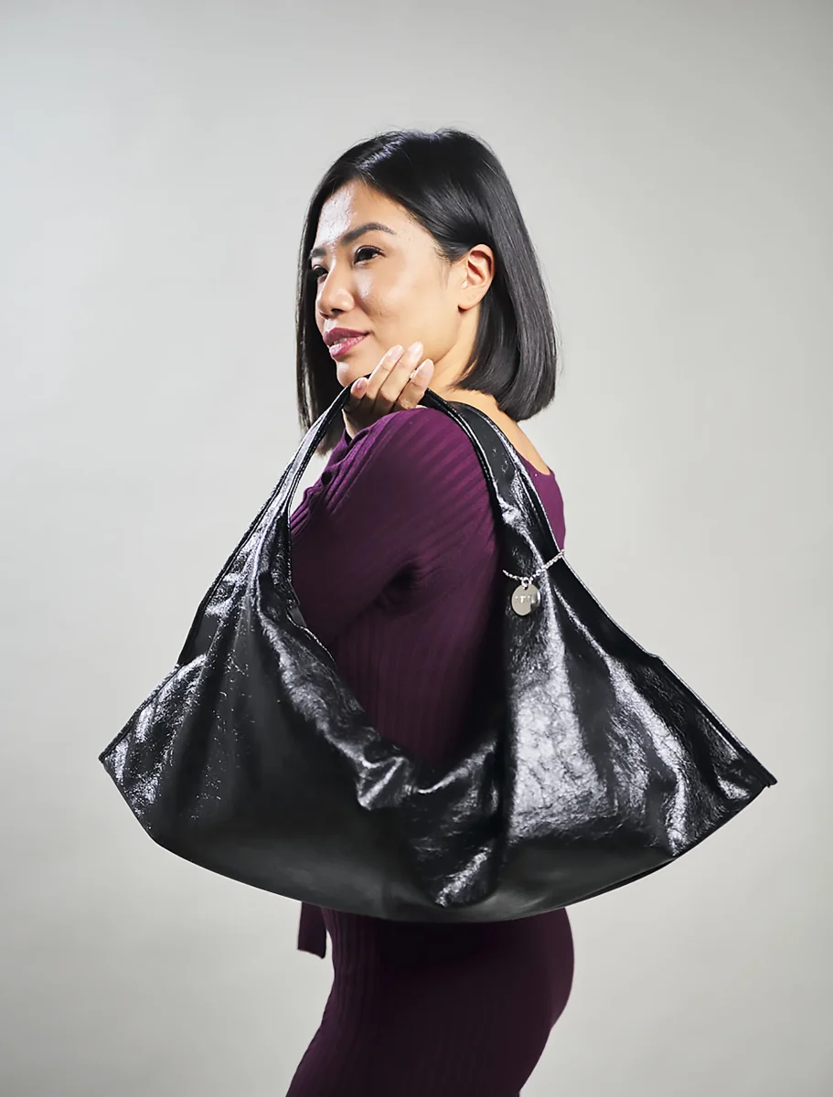 La borsa nera a spalla Nina è l’accessorio perfetto per chi ama combinare stile e praticità . Con un’altezza di 28 cm, questa borsa è abbastanza spaziosa per portare tutto il necessario senza rinunciare a un look elegante. La sua lunghezza di 70 cm la rende ideale per portarla comodamente a spalla, mentre la profondità di 9 cm regala il giusto spazio per i tuoi oggetti personali, senza appesantire il design.