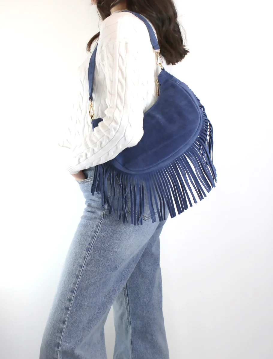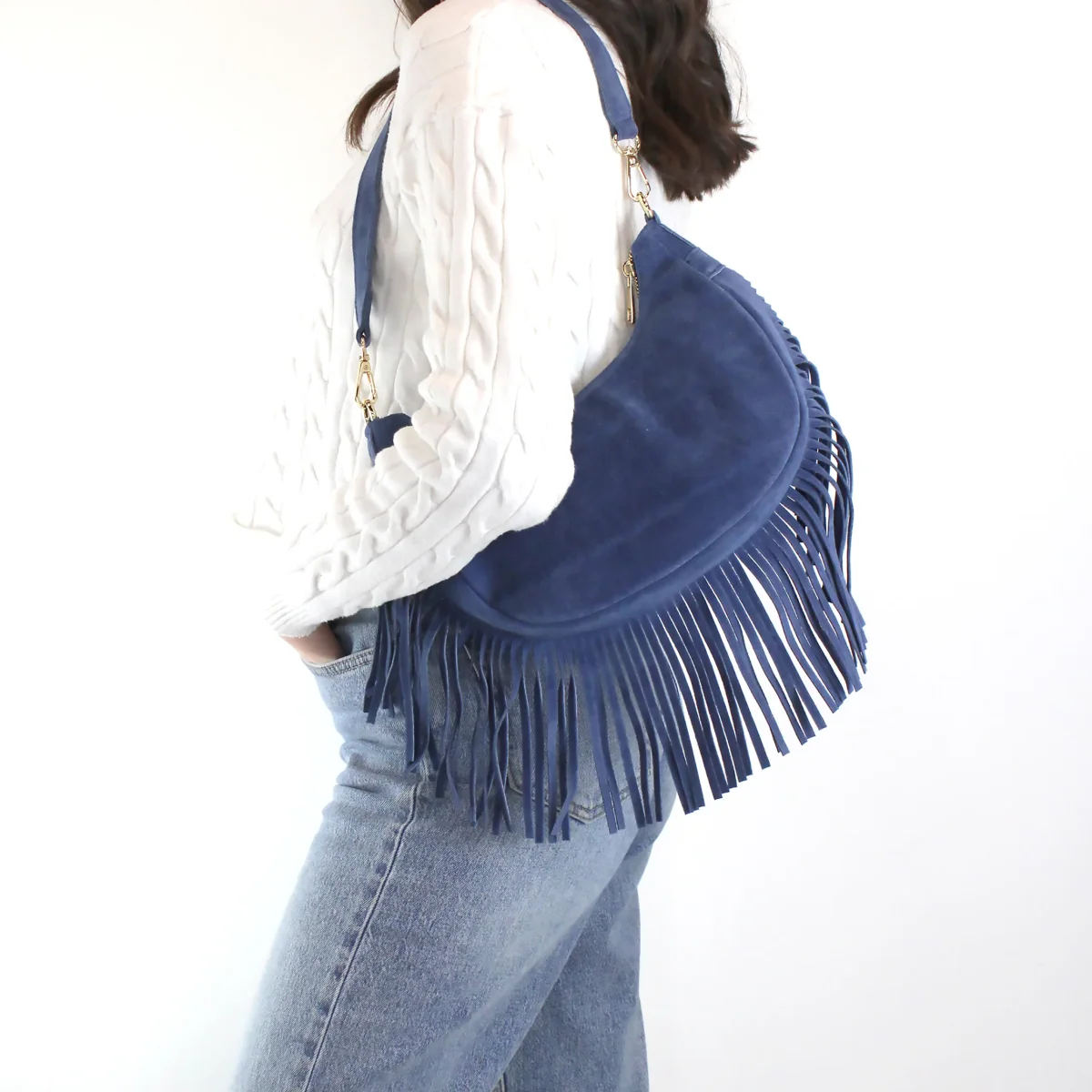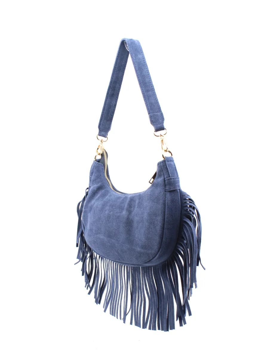 La borsa scamosciata con frange è l’essenza di ciò che significa essere alla moda, senza rinunciare alla funzionalità . Con ogni sguardo e tocco, questa creazione diventerà un must-have irrinunciabile nel tuo guardaroba.
