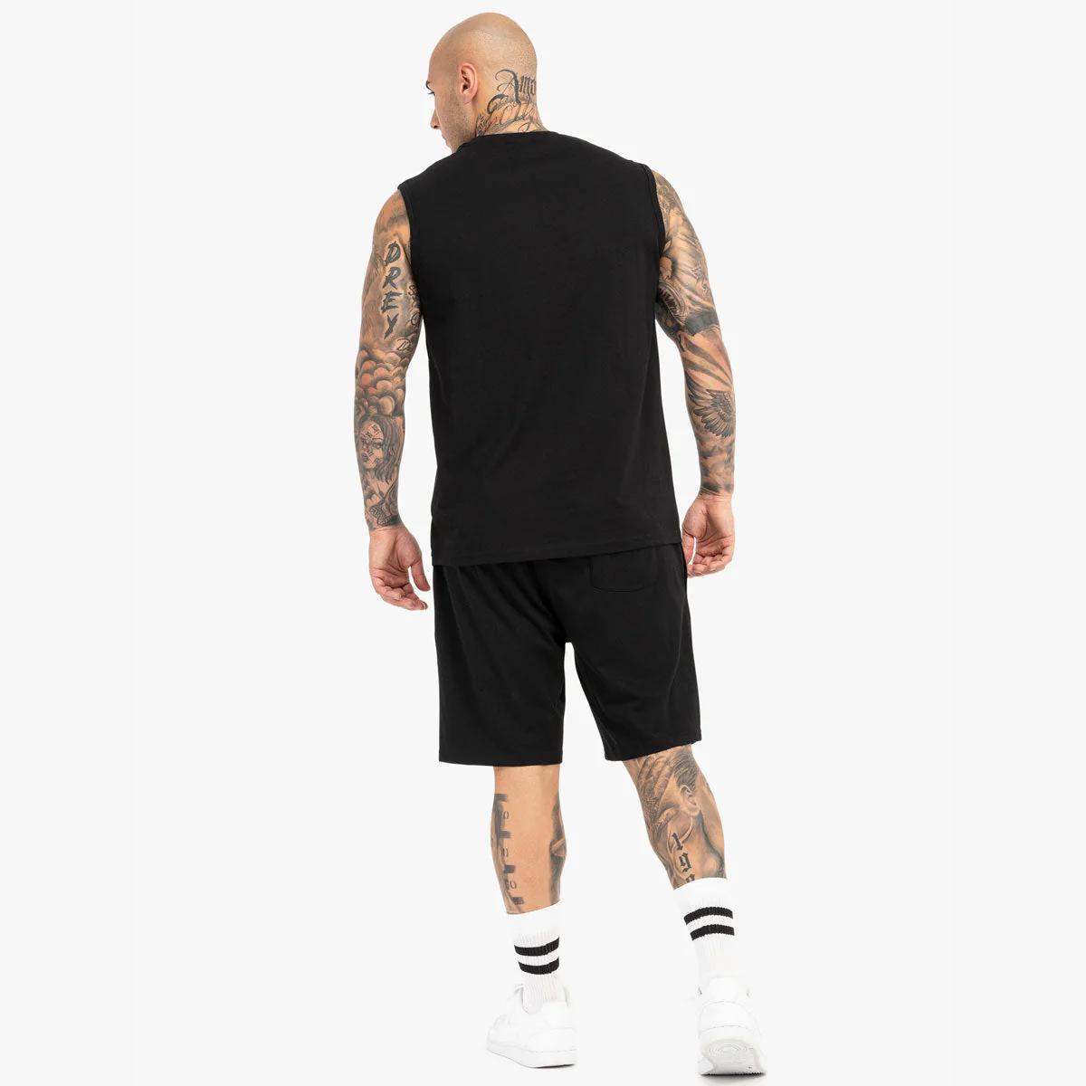 La Canotta e Pantaloncini Tapout Dorrisa Nero è un set versatile e comodo, composto da una maglia smanicata e shorts, ideale per un look sportivo e casual. Entrambi i pezzi sono realizzati in 100% cotone pettinato di alta qualità , garantendo comfort e traspirabilità grazie al tessuto in jersey. La canotta presenta un’ampia e grintosa stampa del logo Tapout a contrasto sul petto, presente anche sui pantaloncini. Gli shorts sono dotati di due tasche anteriori pratiche e una tasca posteriore applicata, rendendo il set perfetto per allenamento e tempo libero.