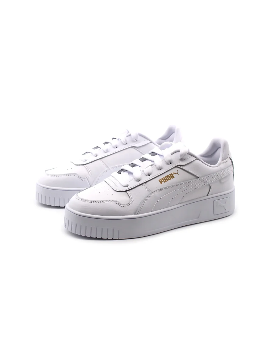 Sneaker da ragazza Puma Carina Street Jr in vera pelle e pelle sitnetica con soffice sottopiede removibile in tessuto e suola platform in gomma. Comoda e alla moda. Perfette per completare i tuoi look streetwear.