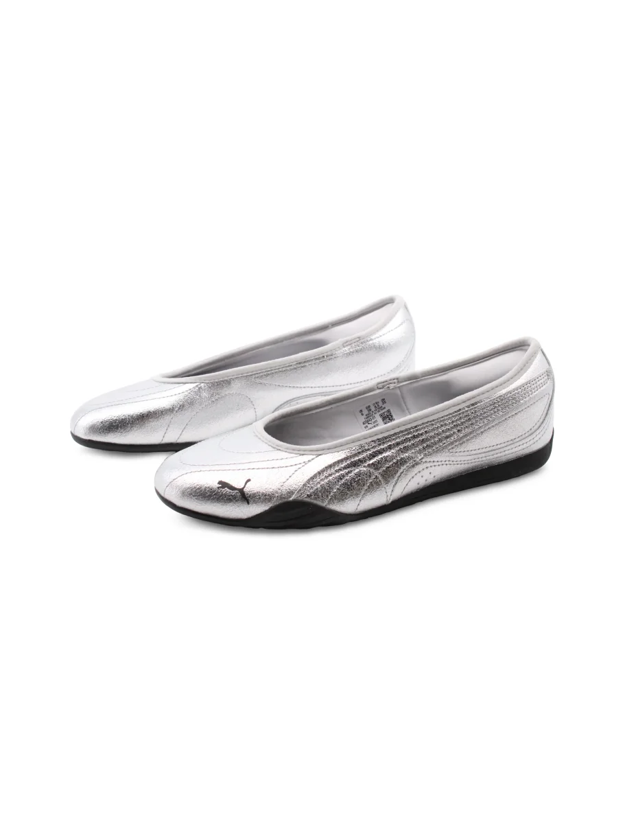 La ballerina Catch Soleil di Puma è pensata per chi cerca comfort senza rinunciare allo stile. La fodera in tessuto mantiene il piede fresco e morbido, offrendo una vestibilità piacevole durante tutto il giorno. Il plantare removibile è un vero plus: potrai sostituirlo facilmente con un tuo plantare personalizzato, senza sacrificare il supporto. Anche il sottopiede in tessuto contribuisce a una sensazione di freschezza e traspirabilità, così ogni passo risulta leggero. La suola in gomma assicura una buona aderenza, garantendo sicurezza anche su superfici scivolose. Perfetta per muoversi con disinvoltura in città o per un look casual elegante.