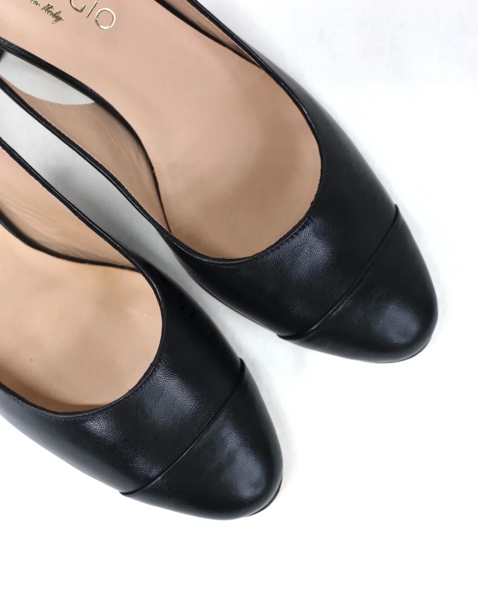 La Chanellina Cosmo nera è realizzata a mano in Italia con materiali di alta qualità , è disponibile nelle taglie grandi dal 42 al 45 ed i numeri piccoli dal 32 al 36.