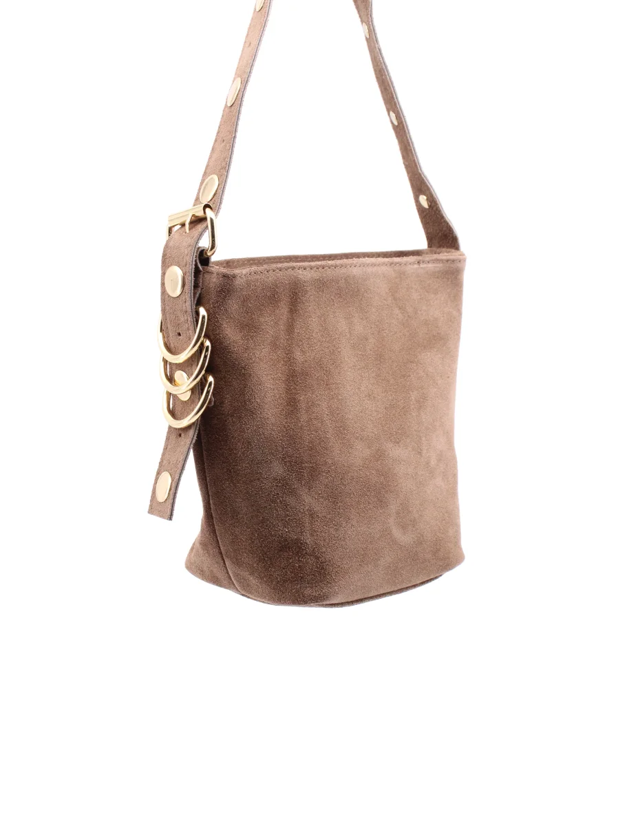 La pelle scamosciata, scelto per la sua morbidezza e il suo fascino intramontabile, conferisce a questa borsa un carattere distintivo, facendo risaltare la sua manifattura artigianale.