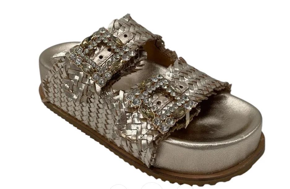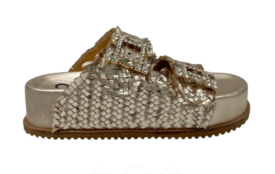 CIABATTA CON DUE FASCE REGOLABILE CON FIBBIE GIOIELLO