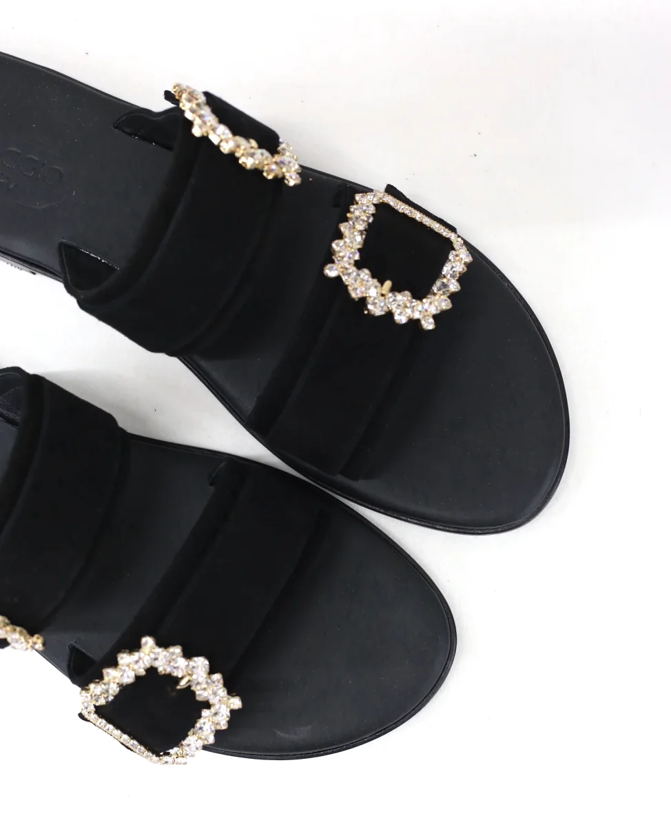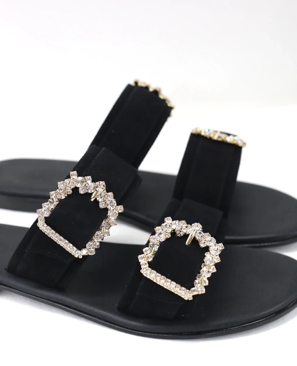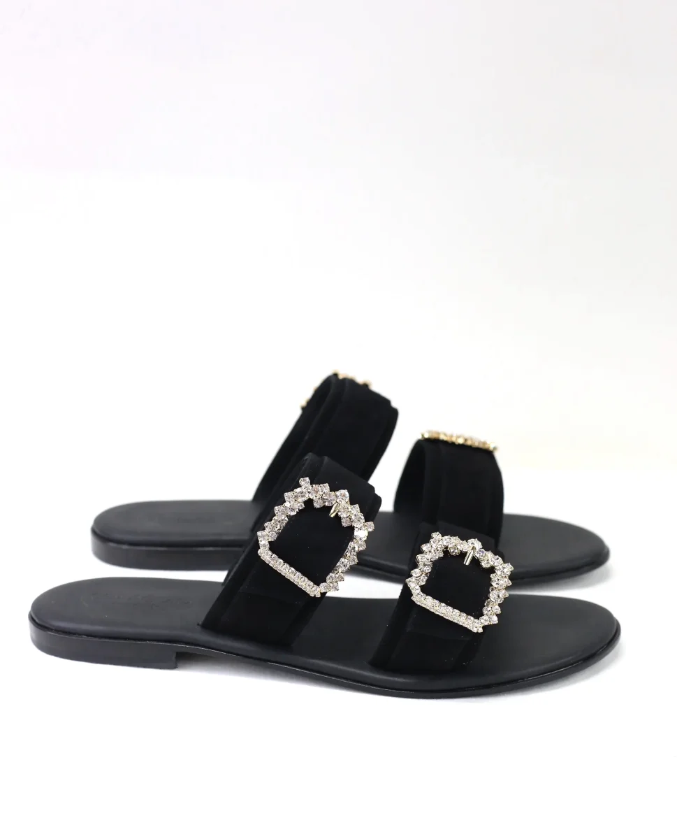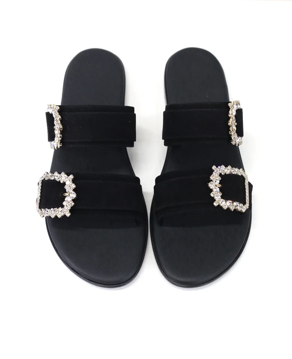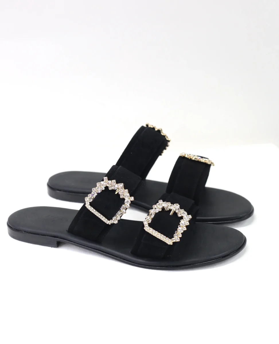 Ciabattina doppia fascia camoscio nero