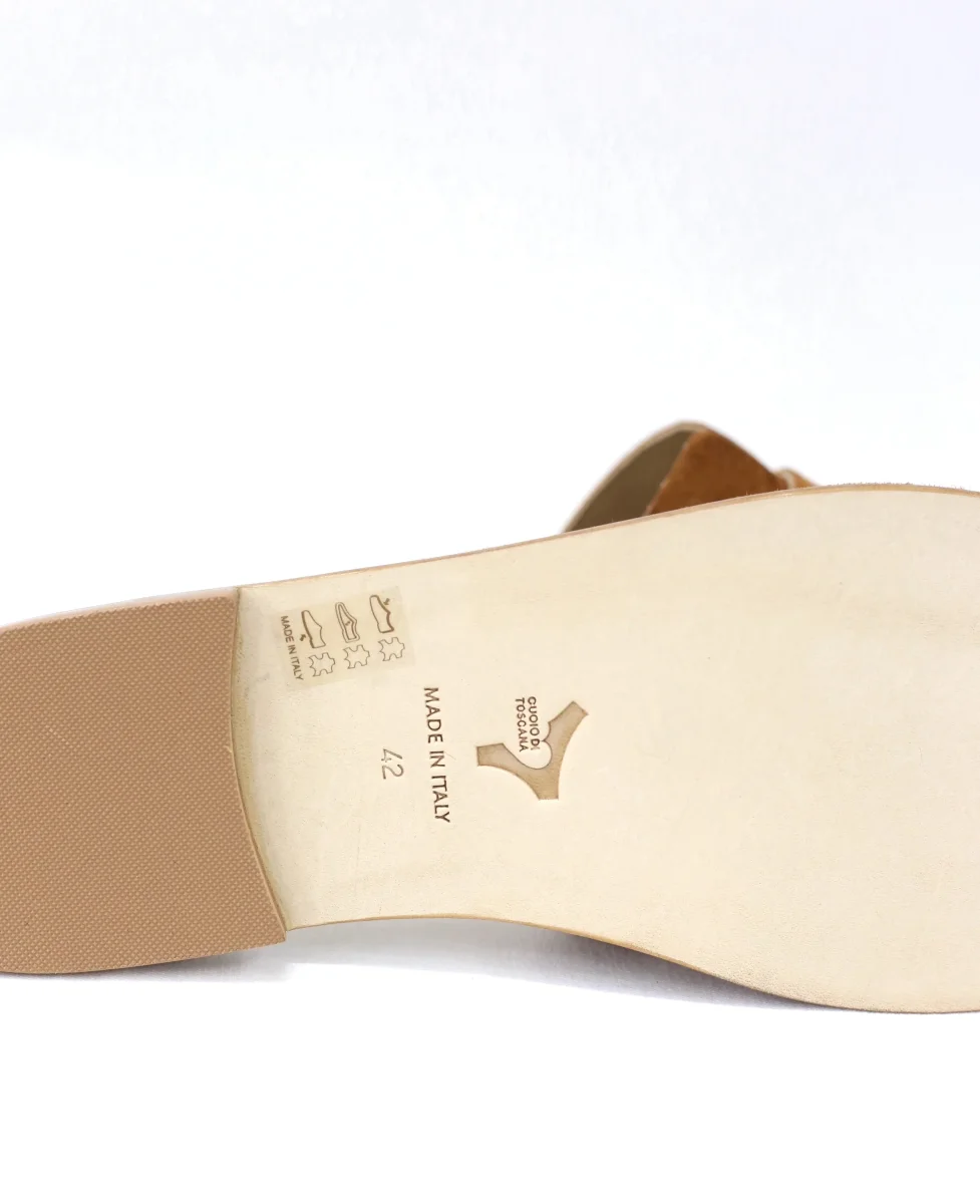 La Ciabattina Ilary cuoio è prodotta artigianalmente in Italia, disponibile nei piccoli numeri dal 32 al 35 e grandi numeri donna dal dal 42 al 45