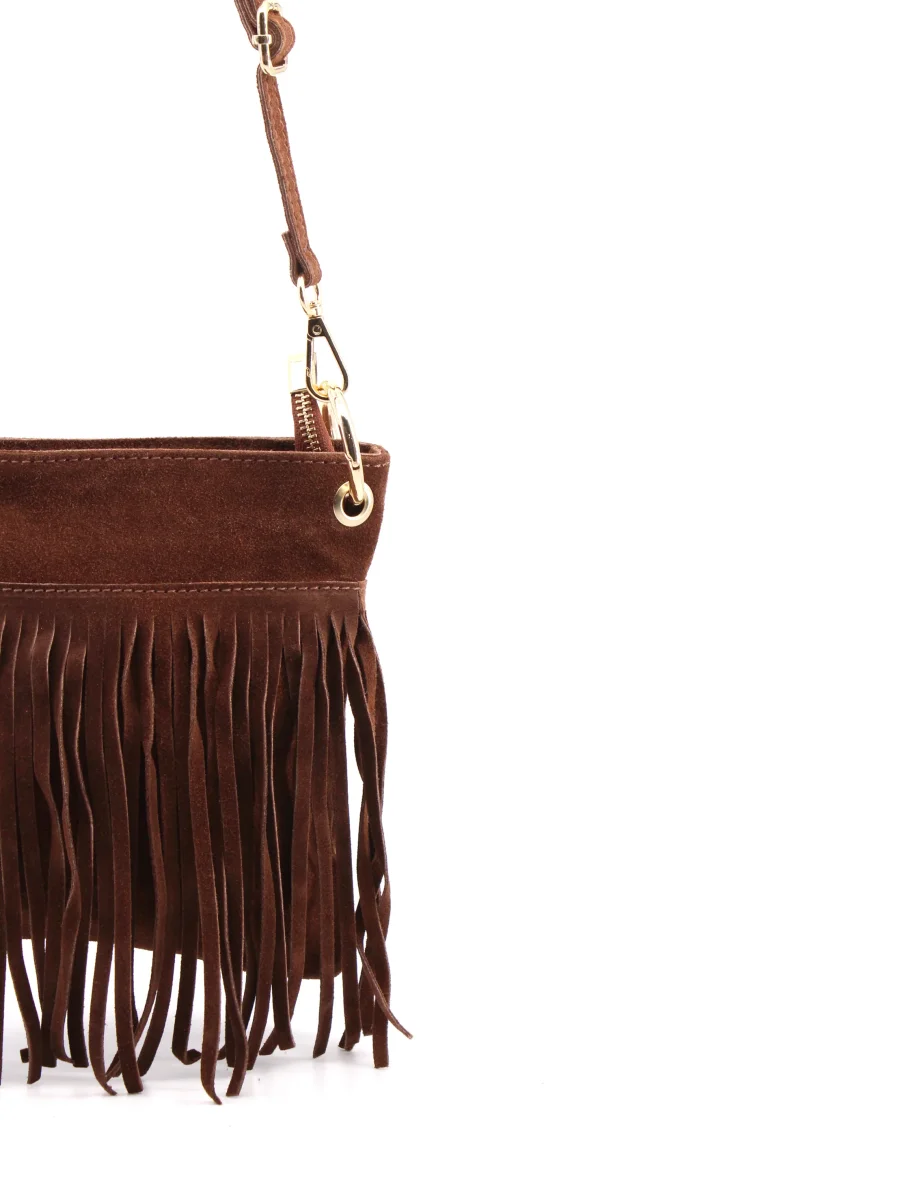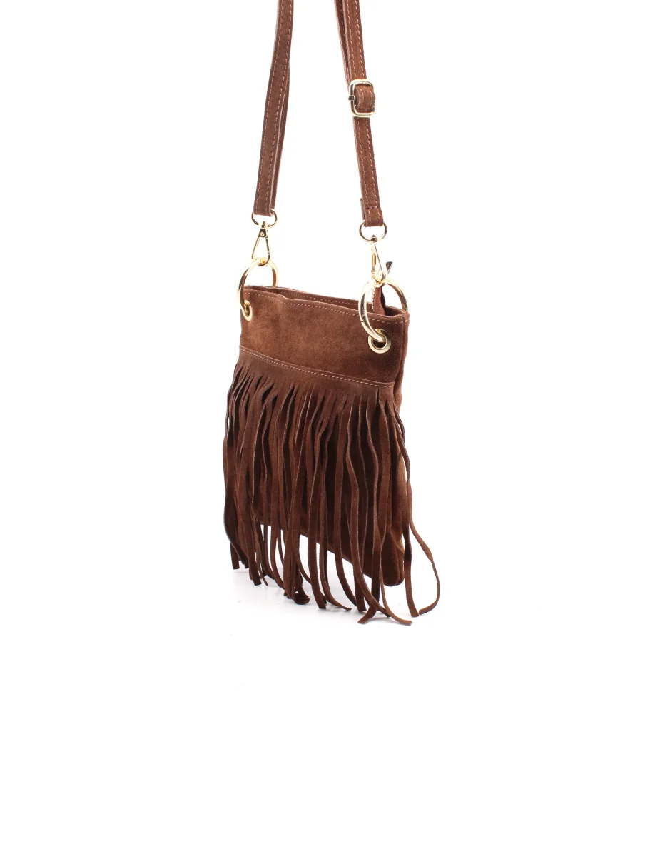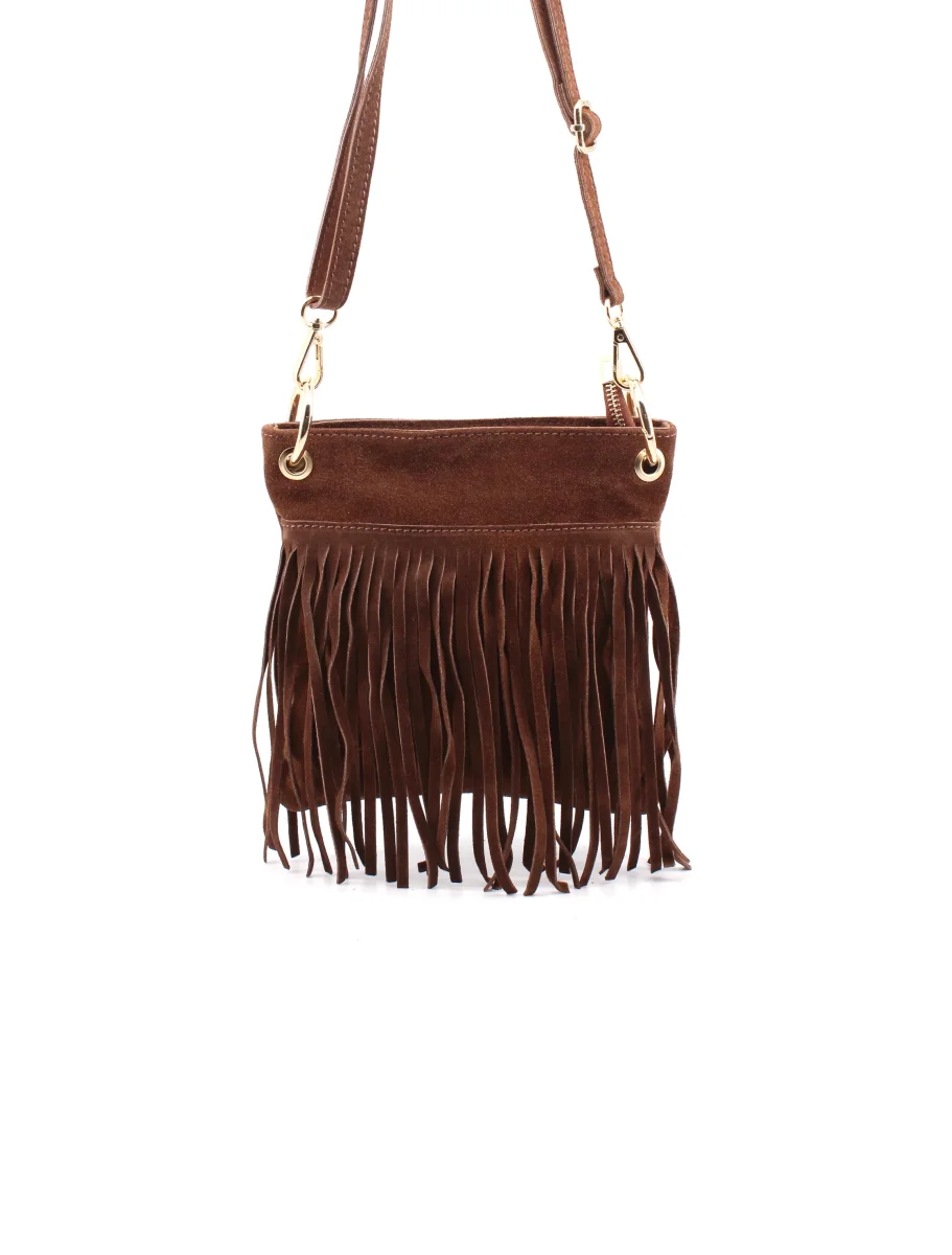 La borsa Claudia unisce un design raffinato a dimensioni perfettamente bilanciate: con un’altezza di 20 cm, una lunghezza di 20 cm e una profondità di 5 cm, offre uno spazio contenuto ma funzionale, ideale per accompagnare ogni giornata con eleganza discreta. La tracolla regolabile consente di adattare la lunghezza in base alle preferenze personali, garantendo comfort e praticità senza rinunciare allo stile. Realizzata interamente in Italia dal Laboratorio Artigianale Borse, questa creazione riflette la maestria e l’attenzione ai dettagli tipiche del Made in Italy. La pelle scamosciata conferisce una texture morbida e sofisticata, mentre le frange aggiungono un tocco distintivo che mantiene comunque un’eleganza misurata. Claudia è pensata per chi cerca un accessorio capace di unire qualità artigianale e dimensioni contenute, perfettamente adatte a ogni occasione, dal giorno alla sera.