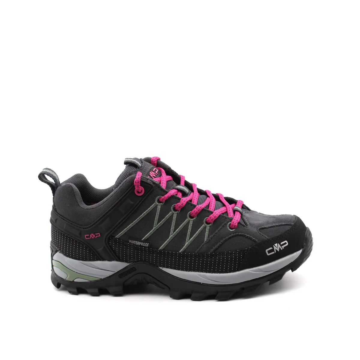Sneaker outdoor da donna Cmp in vera pelle con inserti in tessuto e fondo in gomma Fullongrip, sottopiede Ortholite e fodera in Clima Protect. Modello ideale per il tempo libero.
