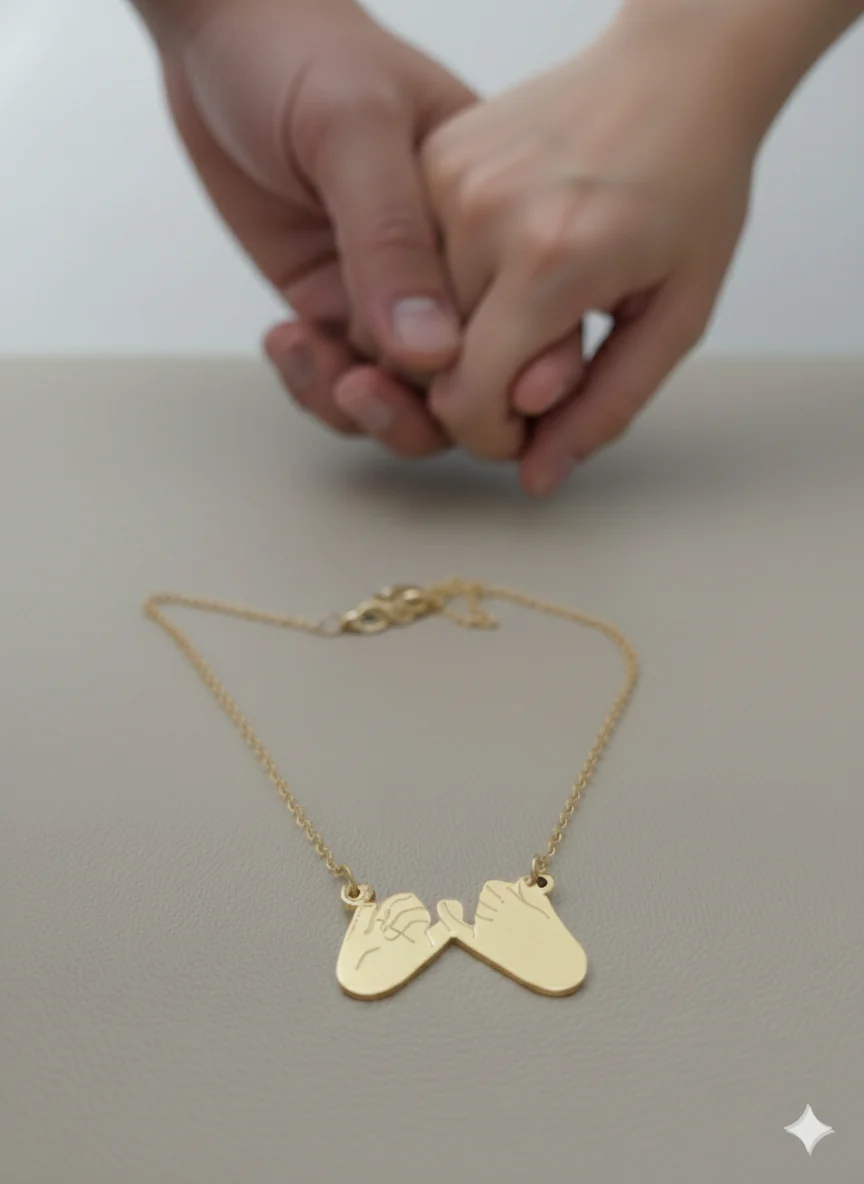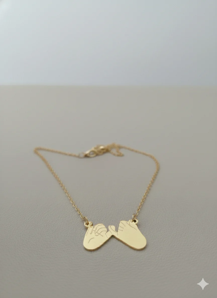 Porta sempre con te una promessa d’amore con la Collana Promise. Questo elegante gioiello dorato presenta un ciondolo a forma di mani intrecciate, simbolo dolce e romantico di una promessa d’amore. Mostra il tuo impegno con stile con questa collana unica.