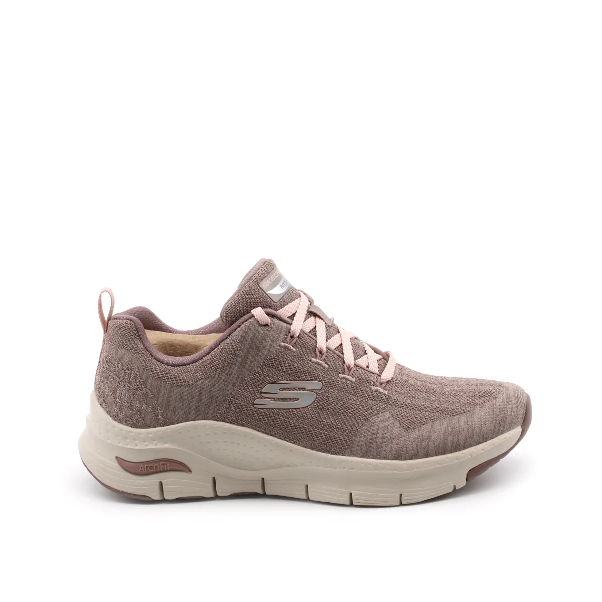 Sneaker da donna Skechers Arch Fit Comfy Wave in tessuto con supporto sull’arco plantare, sottopiede Air Cooled in tessuto e fondo in gomma. Comoda e alla moda. Dal look sportivo.
