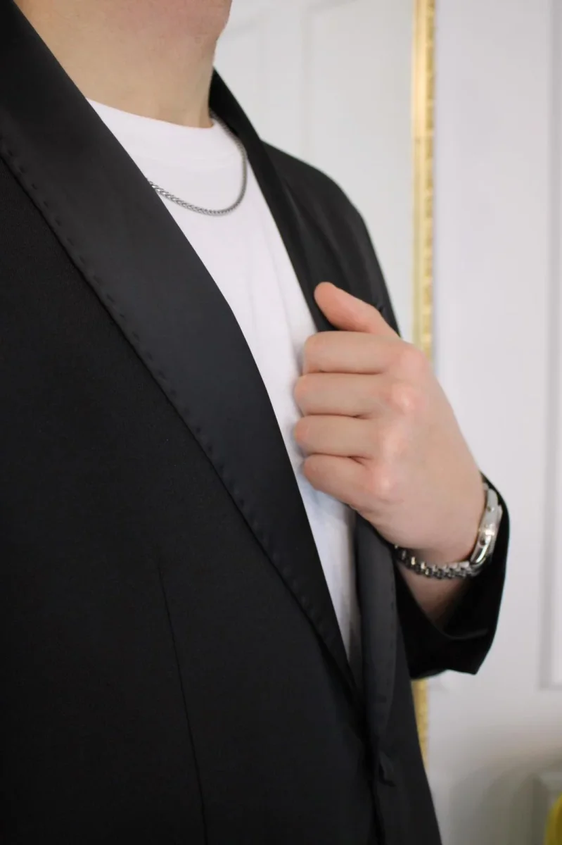 Completo elegante in raso per uomo, composto da giacca e pantalone coordinati. Il tessuto in raso garantisce una finitura lucida e sofisticata, perfetto per occasioni formali e cene di gala. La giacca presenta una vestibilità classica con dettagli raffinati, mentre il pantalone assicura comfort e movimento. Un’opzione versatile per chi ricerca stile e qualità in un unico capo, ideale per completare il proprio guardaroba con un tocco di lusso.