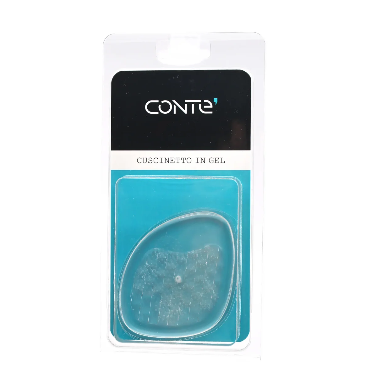 Cuscinetto in gel trasparente, antiscivolo, ideale per tacchi Conte’. Aiuta a prevenire il dolore della pianta del piede dovuto alle scarpe con tacchi alti. Gel trasparente, sottile ed invisibile, con scanalatura antiscivolo.