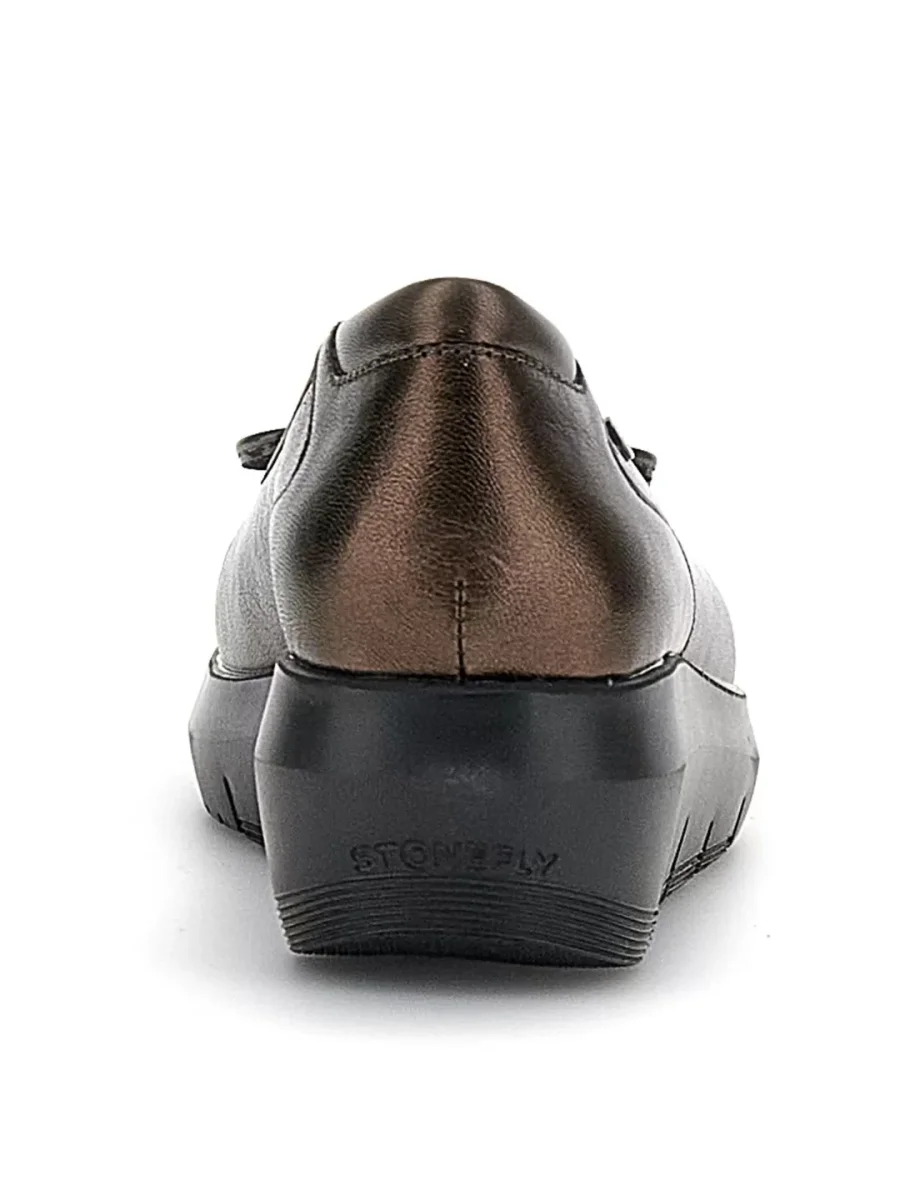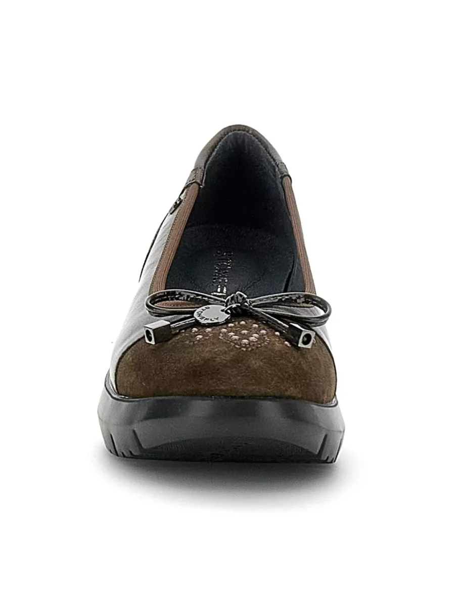 TOMAIA IN PELLE LAMINATA CON INSERTI IN CAMOSCIO E FIOCCHETTO ALLA PUNTA