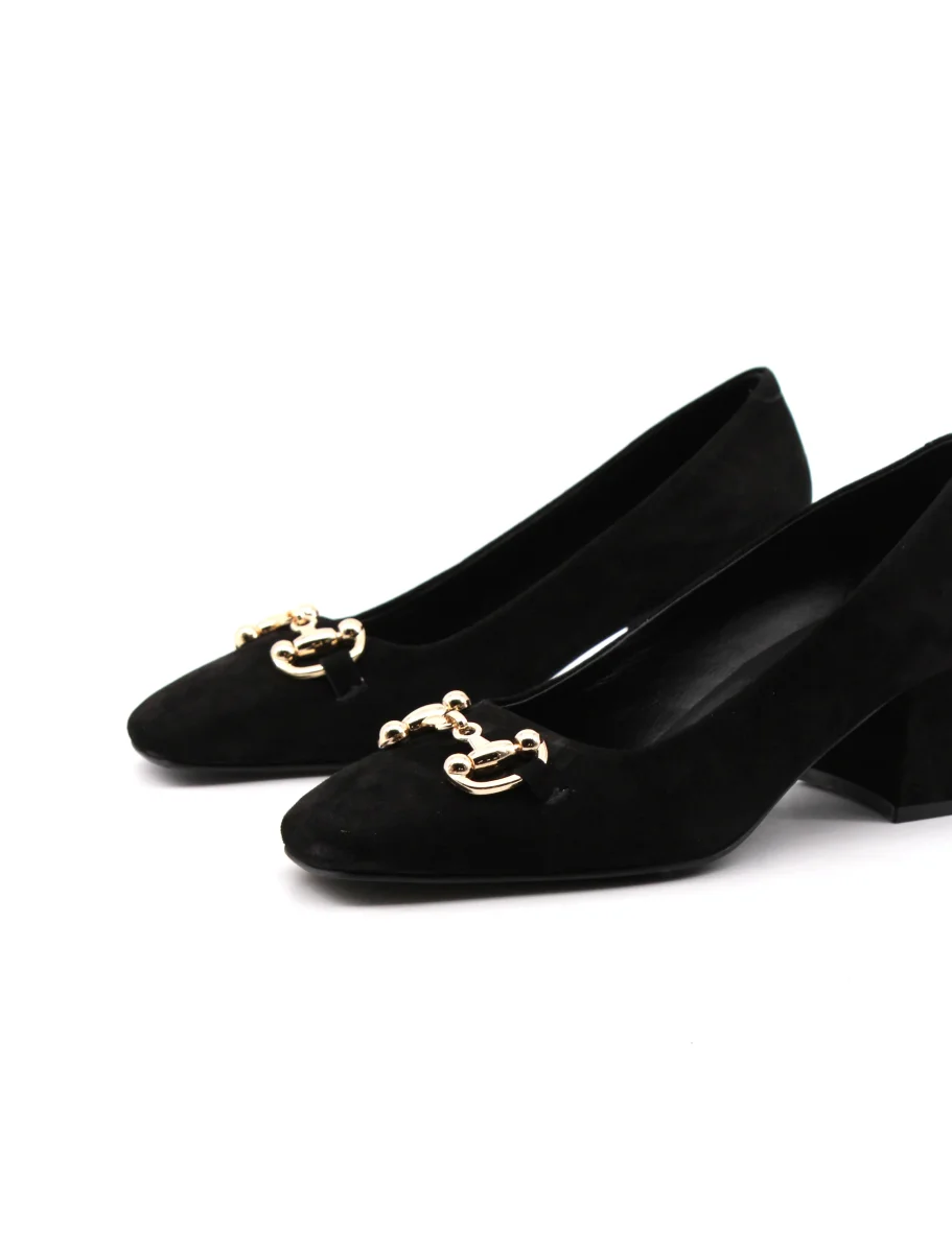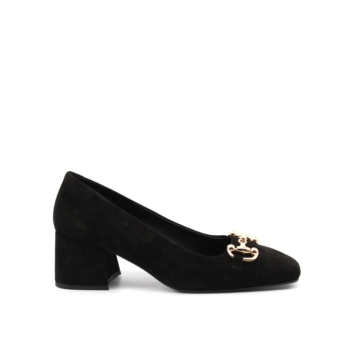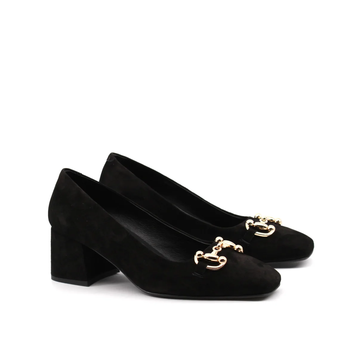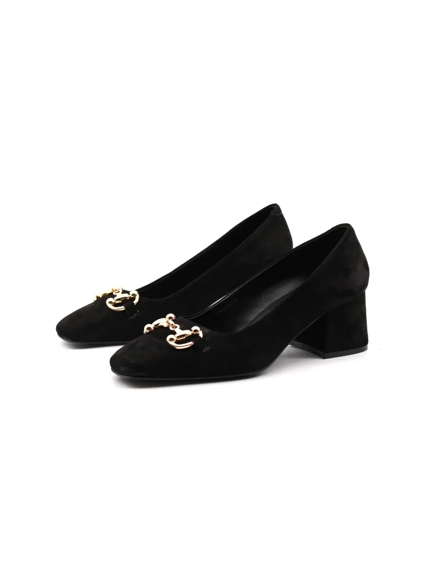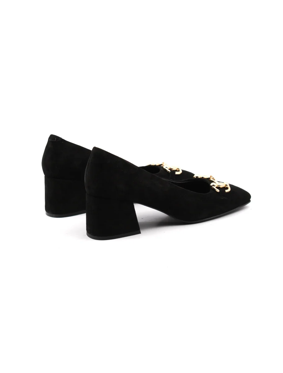 Décolleté da donna Shaddy con tomaia in vera pelle scamosciata con morsetto oro, morbido plantare in vera pelle e suola in gomma con tacco alto 6cm. Comoda ed elegante, dal look classico.