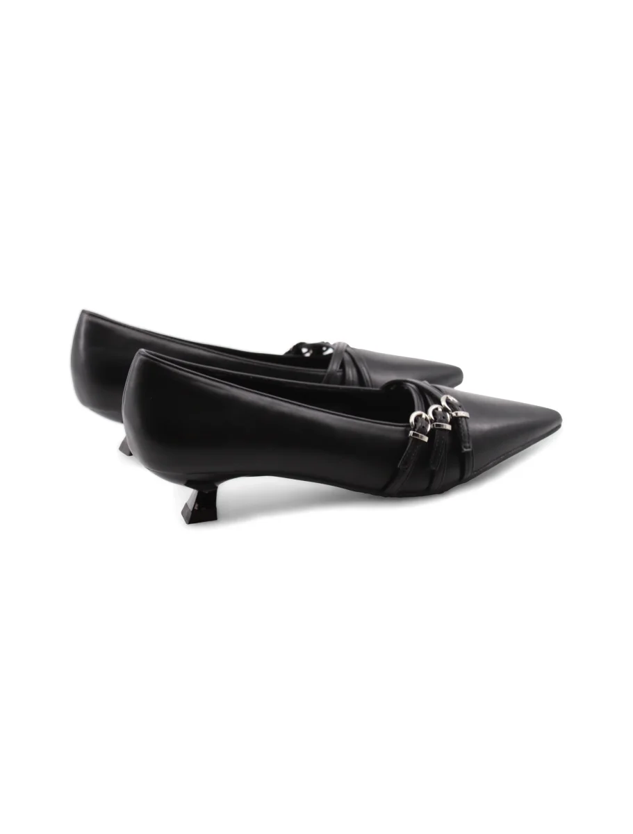 La tomaia in pelle sintetica completa il design con uno stile moderno e sofisticato. Con una chiusura a fibbie che aggiunge un tocco di originalità, queste décolleté sono pronte ad affrontare qualsiasi occasione, facendoti sentire al sicuro e alla moda. Scegli Gold&Gold per un look che parla di te, ma senza stress.