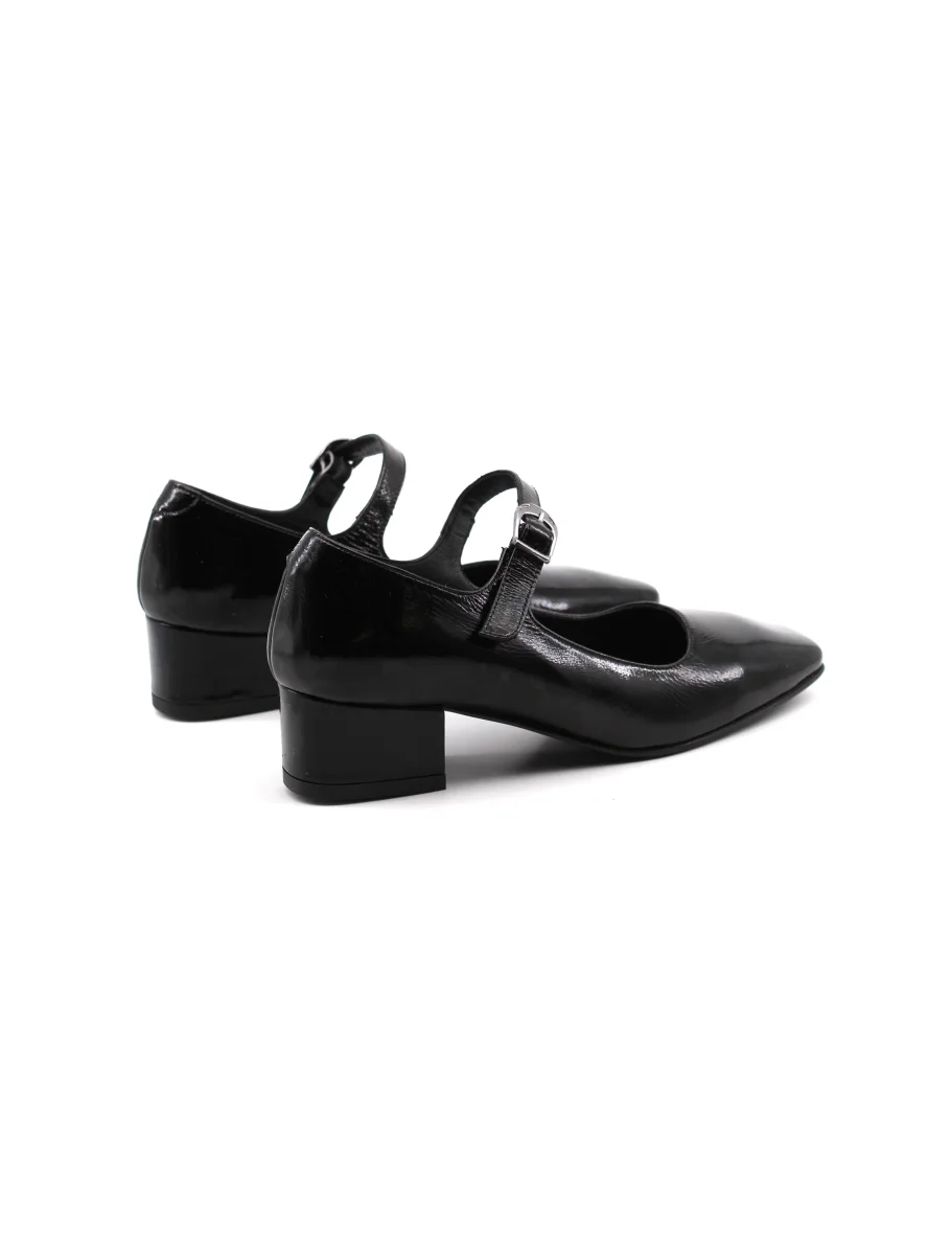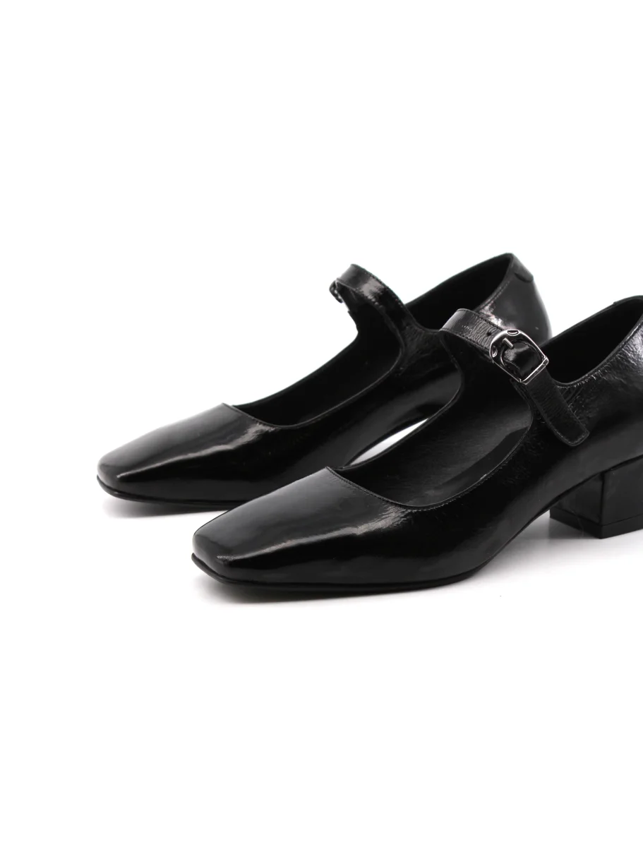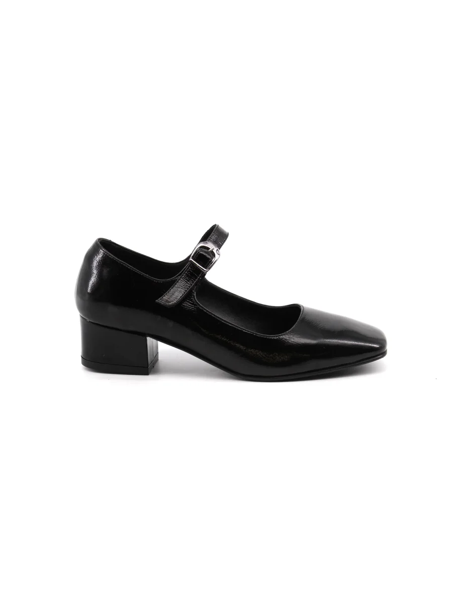 Décolleté mary jane da donna Shaddy con tomaia in vera pelle vernice, morbido plantare in vera pelle, suola in gomma con tacco alto 5cm e cinturino con fibbia. Comoda ed elegante, dal look classico.