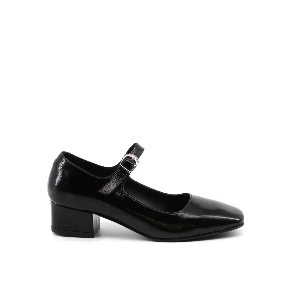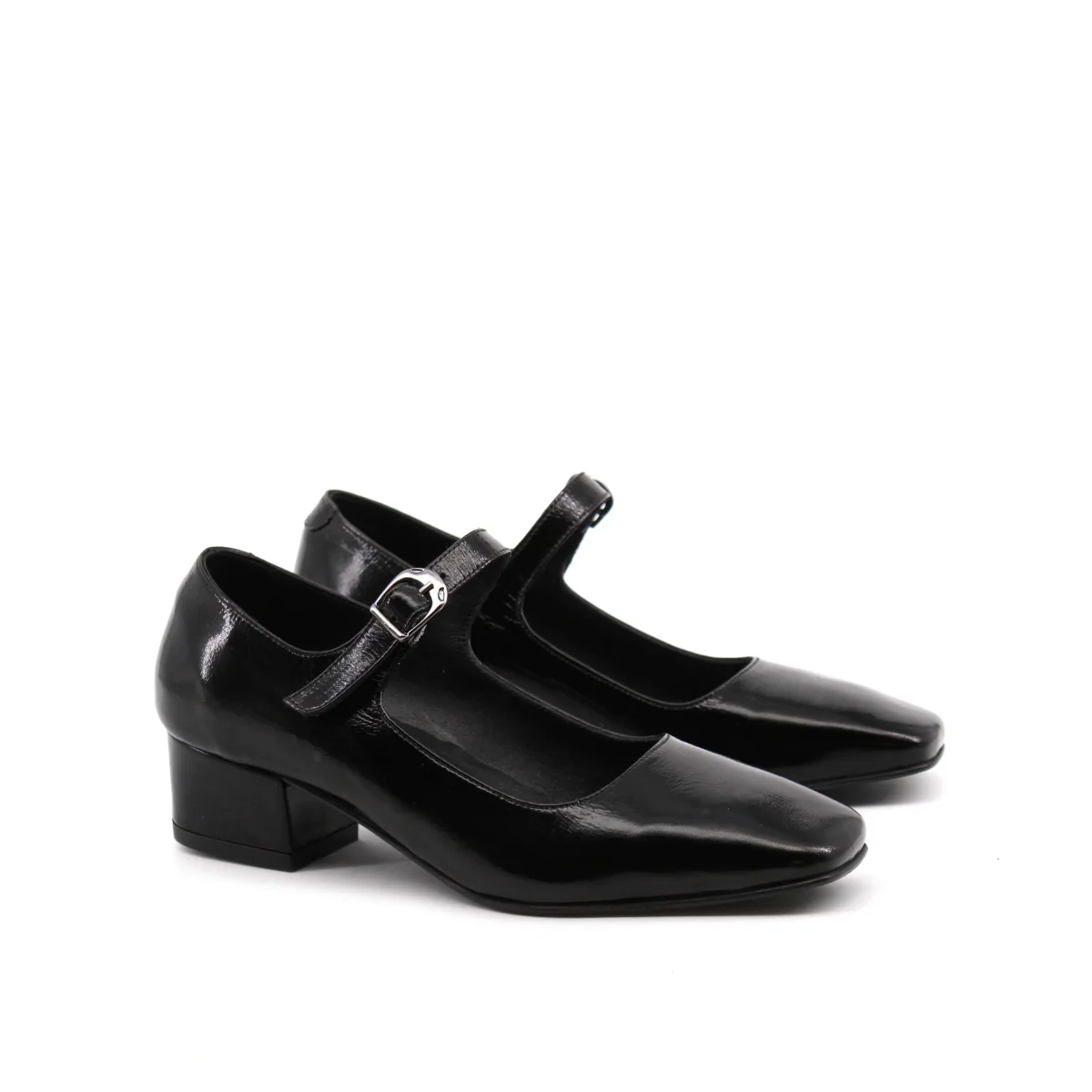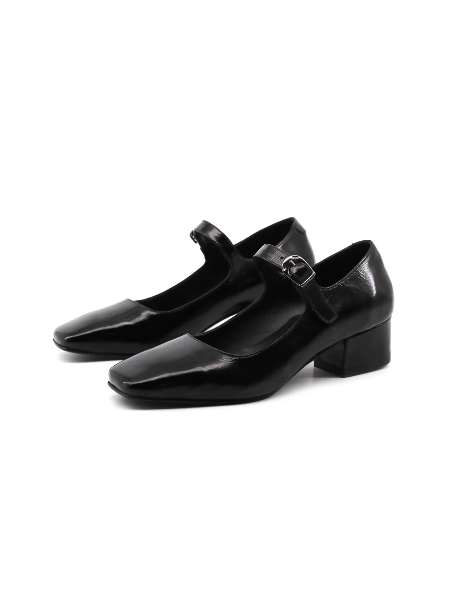 Décolleté mary jane da donna Shaddy con tomaia in vera pelle vernice, morbido plantare in vera pelle, suola in gomma con tacco alto 5cm e cinturino con fibbia. Comoda ed elegante, dal look classico.
