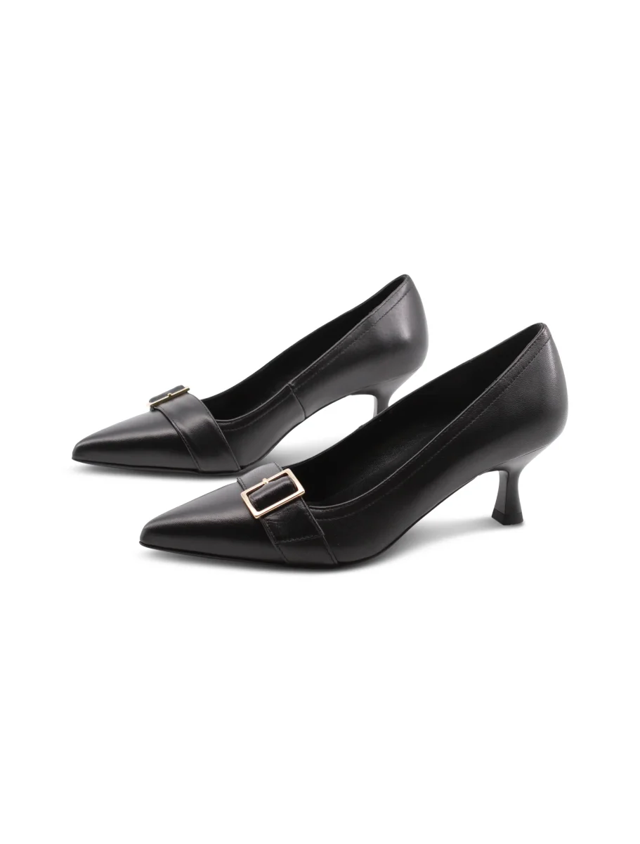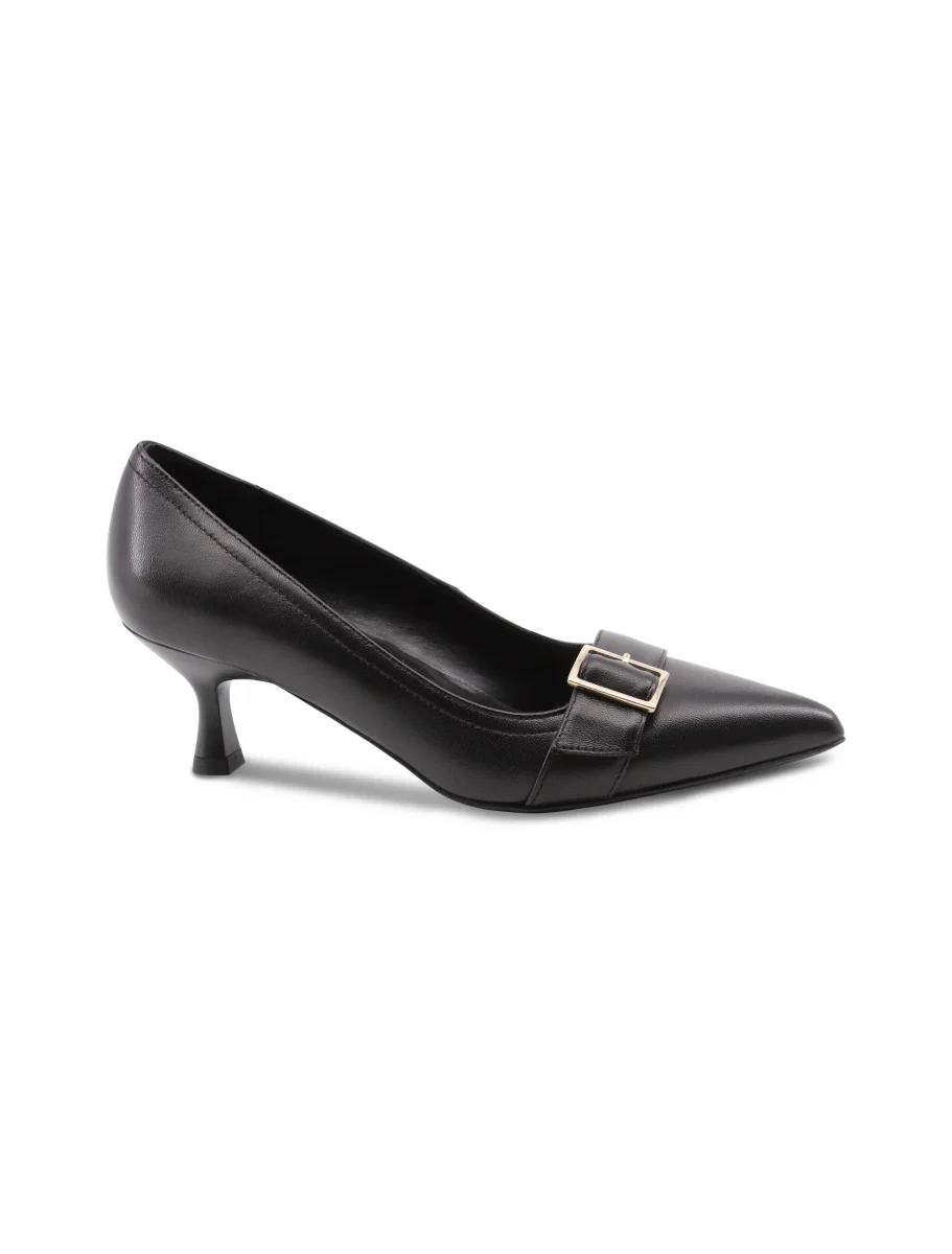 Décolleté nera con fibbia oro da donna