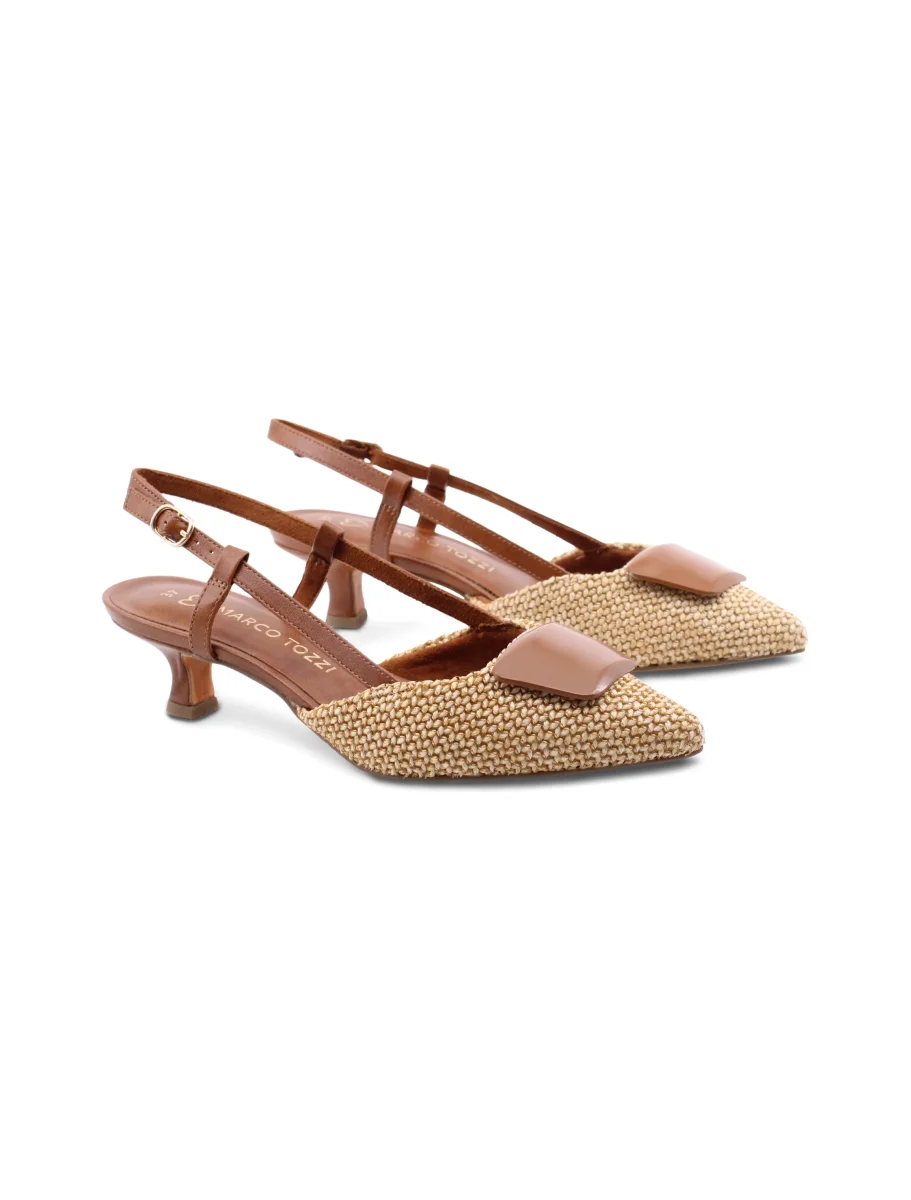 Questo décolleté slingback di Marco Tozzi ha un tacco kitten di 5 cm, perfetto per chi cerca un tocco di eleganza senza rinunciare al comfort. La chiusura con fibbia garantisce una calzata sicura e personalizzabile, così puoi regolare la scarpa secondo le tue esigenze. All’interno, la fodera in tessuto assicura una sensazione piacevole e traspirante durante tutta la giornata. Il plantare fisso è studiato per offrire stabilità senza compromessi, mantenendo il piede comodo anche dopo ore di utilizzo. La suola in gomma, inoltre, assicura un’ottima presa e resistenza, rendendo queste scarpe adatte anche a un uso quotidiano. Un modello semplice ma curato, che combina leggerezza e praticità con uno stile femminile discreto.