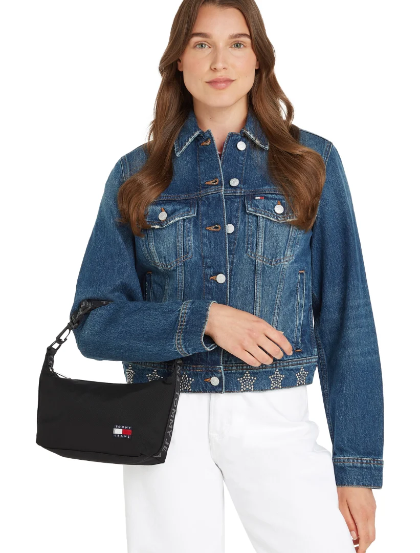 Il design sleek e il logo distintivo di Tommy Jeans le conferiscono un tocco di classe, mentre la tracolla regolabile ti permette di portarla come preferisci. Che si tratti di un aperitivo con le amiche o di una passeggiata in centro, questa borsa è quel dettaglio in più che completa il tuo look.