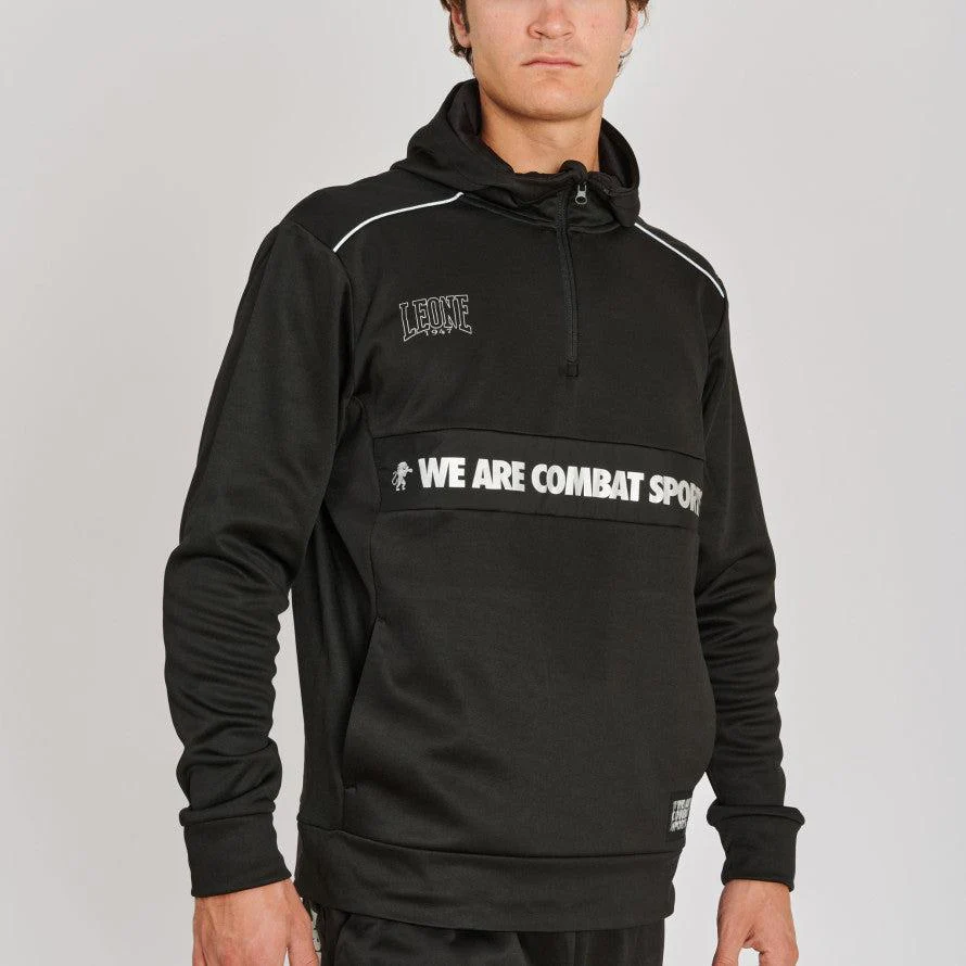 La Felpa Leone Outline con cappuccio AB316 è perfetta sia per gli allenamenti (indoor, outdoor) sia per il tempo libero. Realizzata completamente in poliestere, è un capo multifunzionale immancabile nel guardaroba dei fighter. Il design moderno e originale è arricchito da particolari silver che risaltano come i loghi Leone e i bordini catarifrangenti sulle spalle. La tasca frontale comodissima ti permette di portare con te i piccoli oggetti che vuoi avere a portata di mano. A completare la felpa in basso a destra è presente l’etichetta lenticolare che alterna i loghi Leone 1947 a quello We Are Combat Sports. Abbinala al pantalone Leone Outline AB317 per uno stile accattivante!
