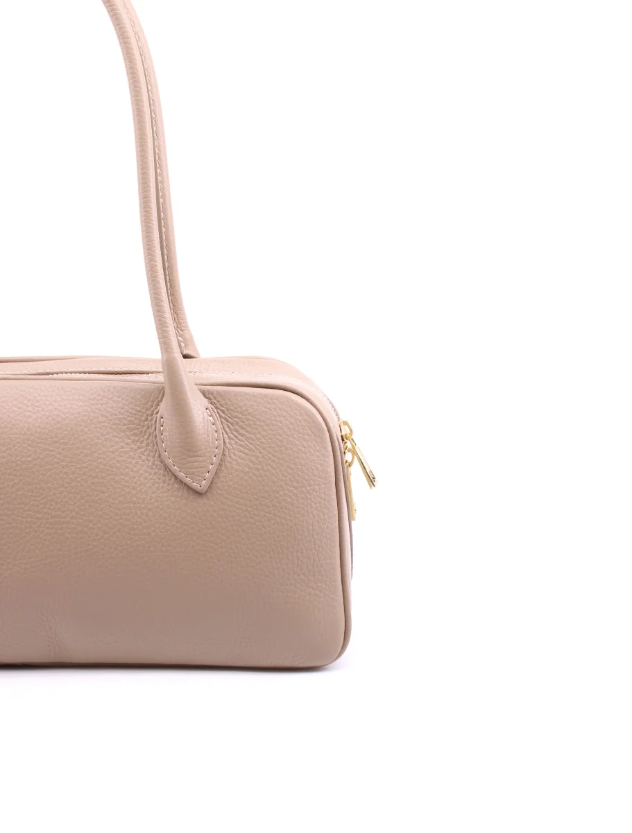Il bauletto Ferrara da donna, realizzato con pregiata pelle Made in Italy, rappresenta un perfetto connubio tra eleganza e funzionalità . Le sue dimensioni studiate con attenzione − una lunghezza di 35 cm, un’altezza di 16 cm e una profondità di 10 cm − lo rendono ideale per accompagnarti in ogni occasione, dal quotidiano alle serate più speciali.
